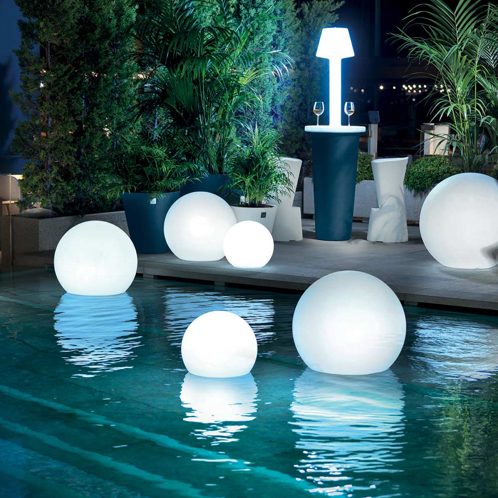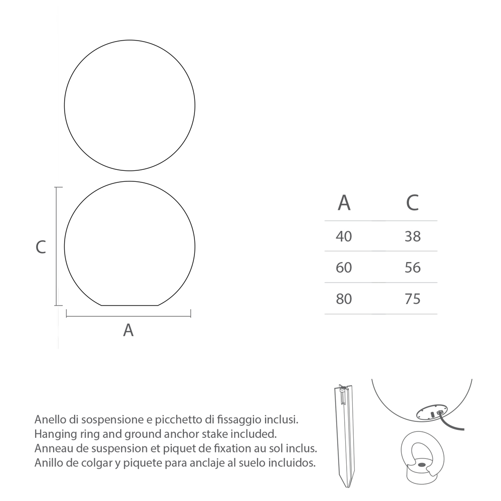 Esta lámpara de exterior está fabricada íntegramente en Italia en polietileno , un material de alta calidad que hace que este producto sea muy estable y resistente a los agentes atmosféricos, perfecto para colocar en diversos espacios exteriores . Un complemento de decoración con forma esférica disponible en varios tamaños que cautivará tu imaginación, permitiéndote jugar con las combinaciones más variadas y personalizadas.