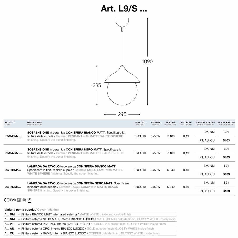 Lámpara de suspensión de cerámica Globo de Aldo Bernardi