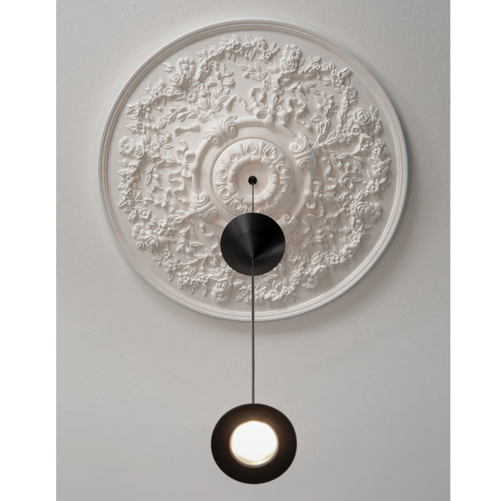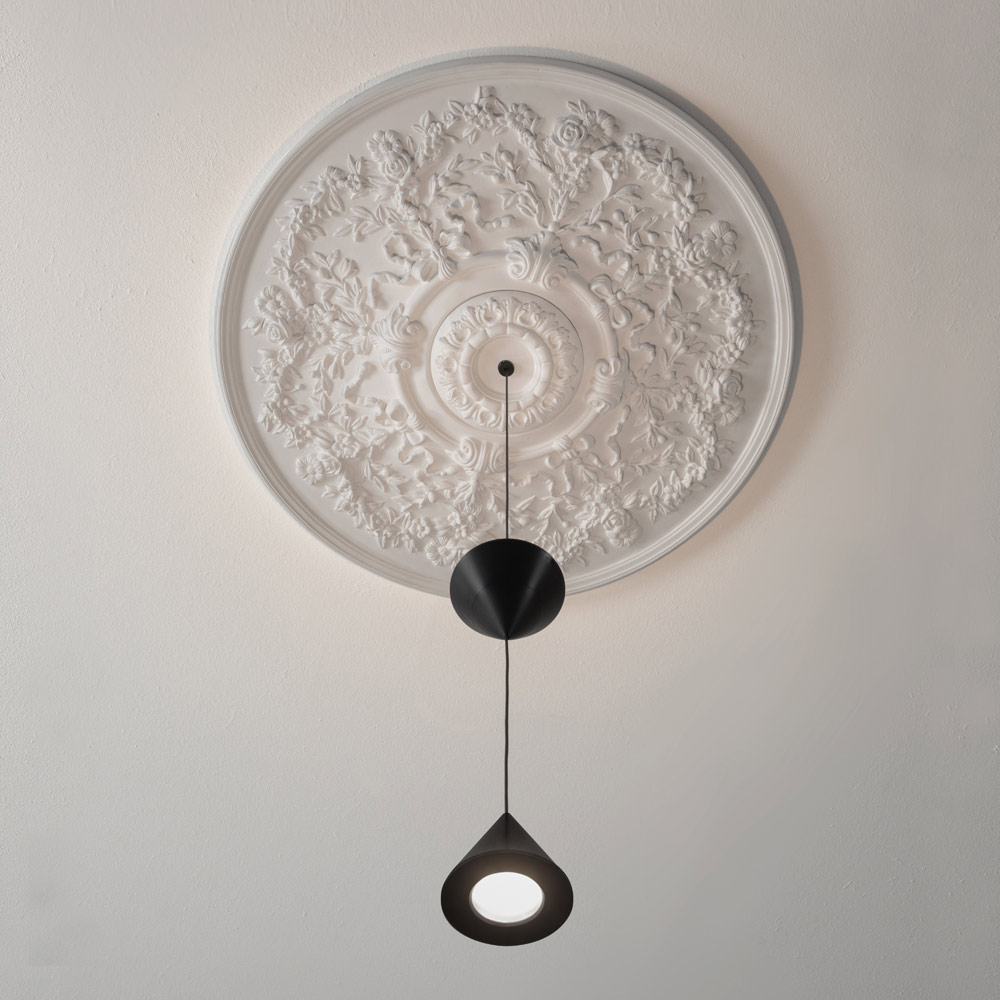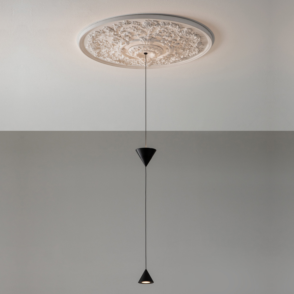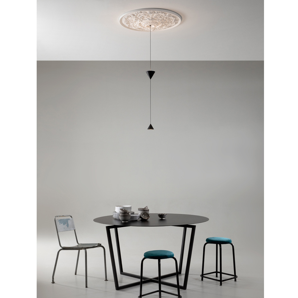 La lámpara está realizada con una estructura de yeso y aluminio para un diseño íntegramente italiano que, a través de la experimentación poco convencional y la búsqueda continua entre tradición y modernidad , es capaz de asombrar, atrever y emocionar, permitiéndote expresar tus emociones a través de un uso decorativo original y personal. de luz.