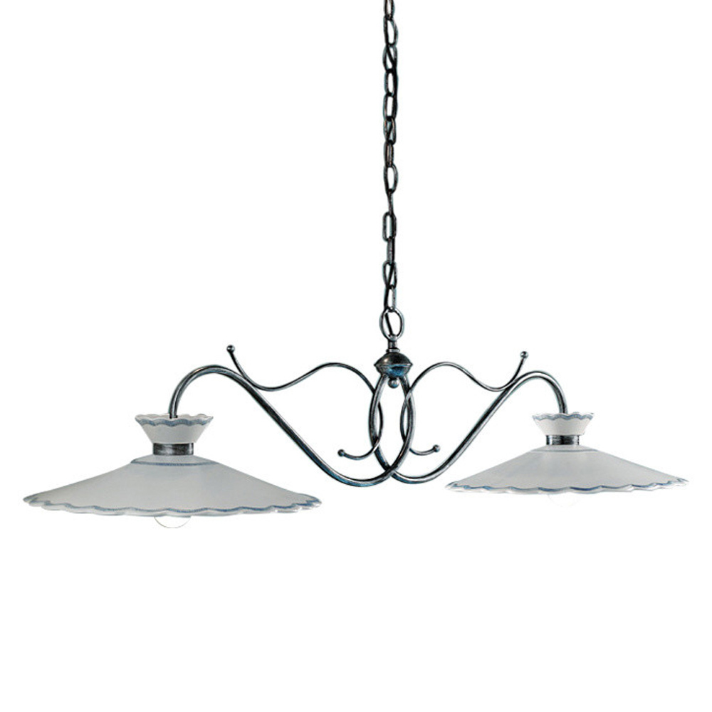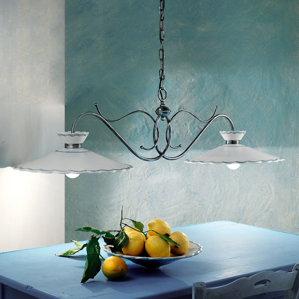 Lámpara colgante artesanal de 2 luces en metal y cerámica con efecto bordado, 2 tamaños fabricada en Italia por Ferroluce.