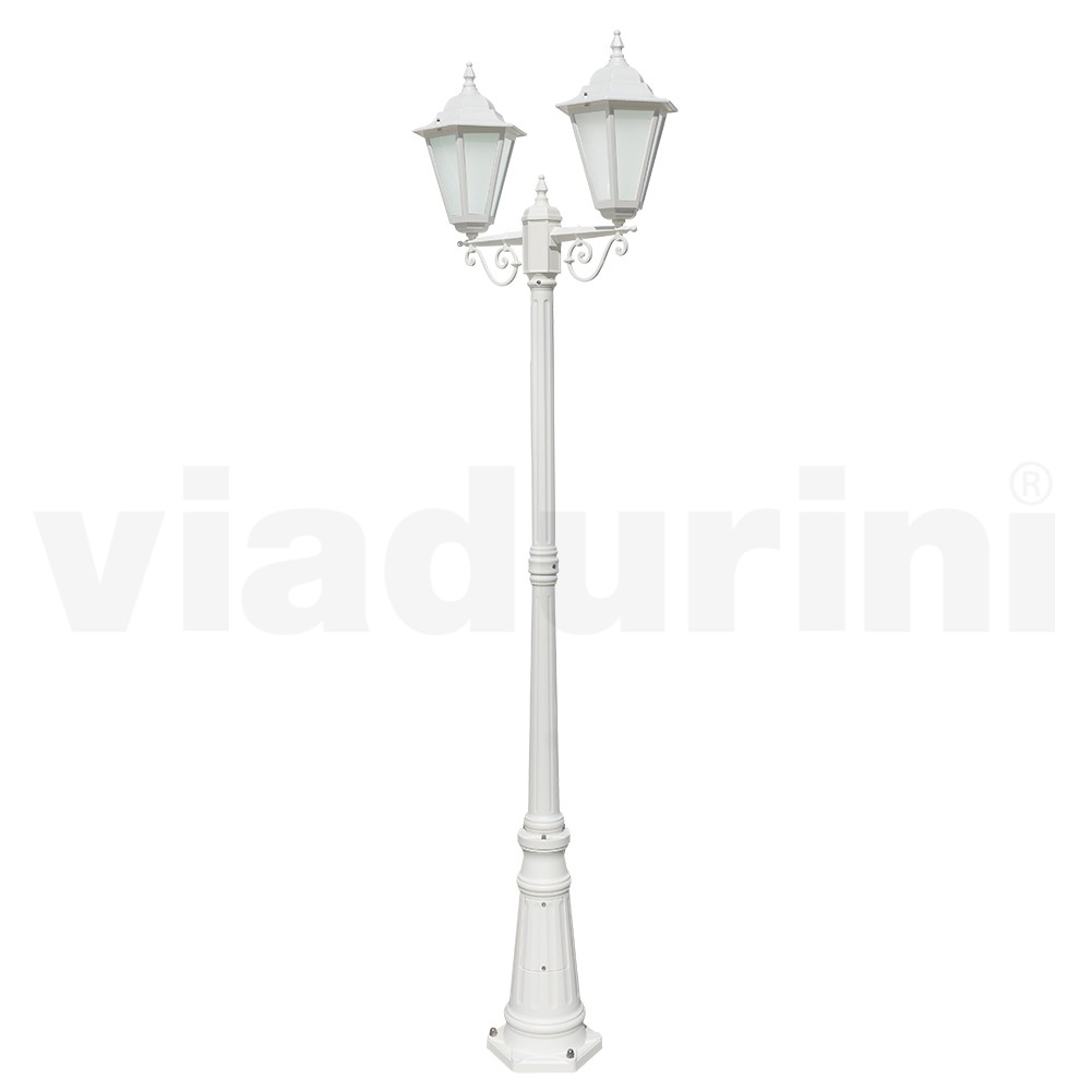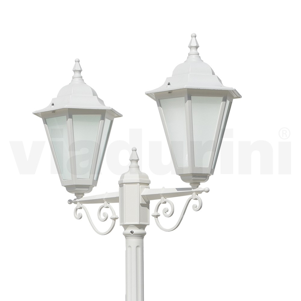 Farola de 2 luces en aluminio y cristal Made in Italy, estilo vintage.
