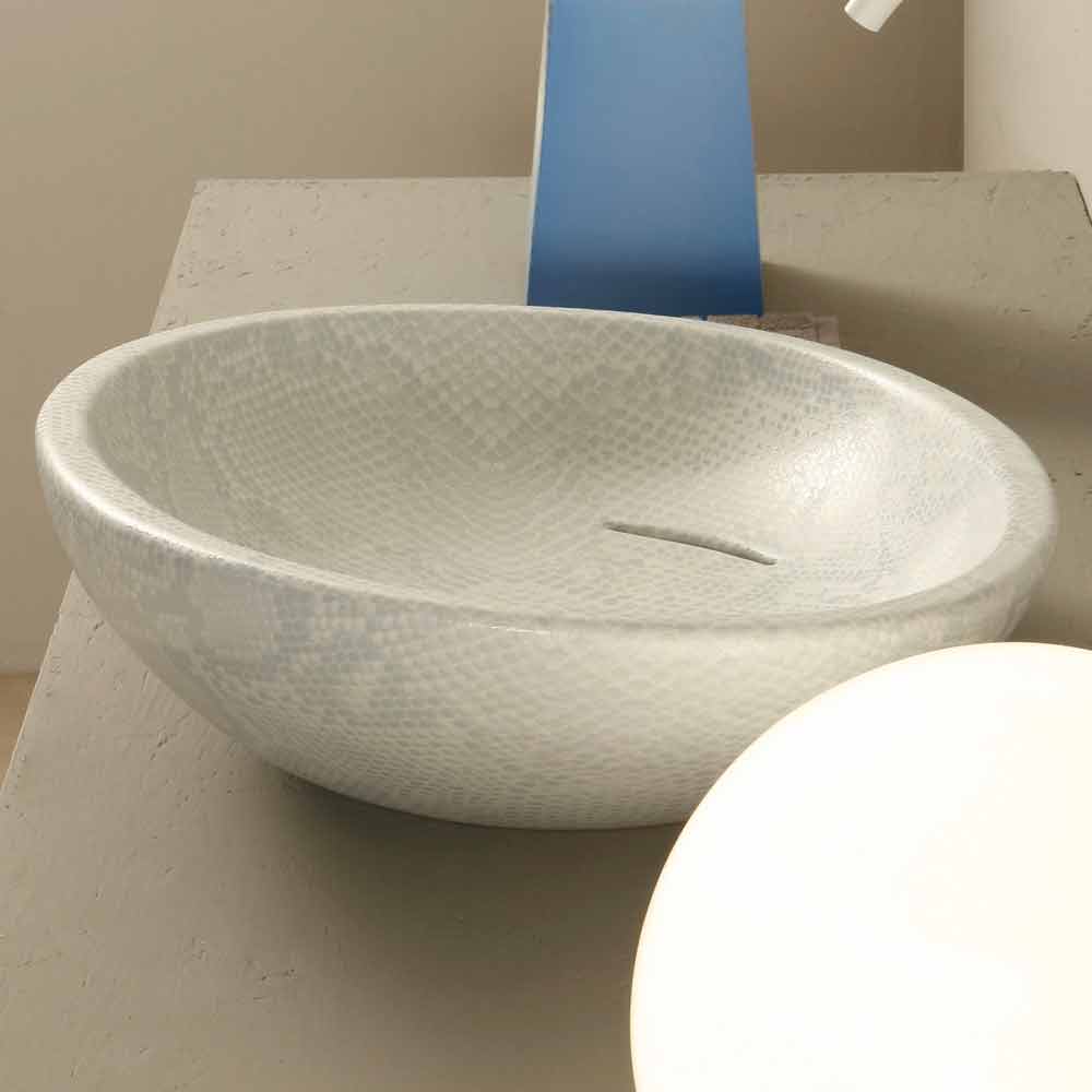 Lavabo sobre encimera de diseño en cerámica pitón blanca made in Italy Glossy
