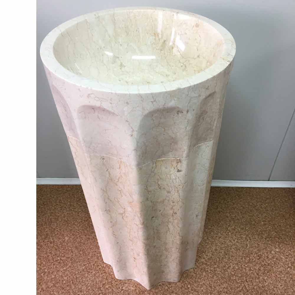 Lavabo columna margarita en piedra natural blanca, pieza única.