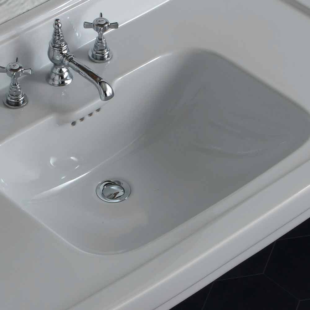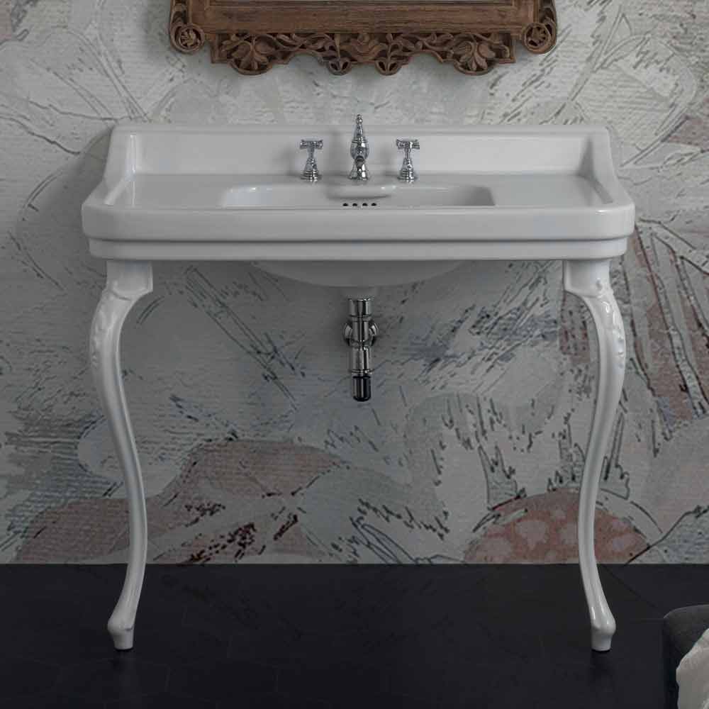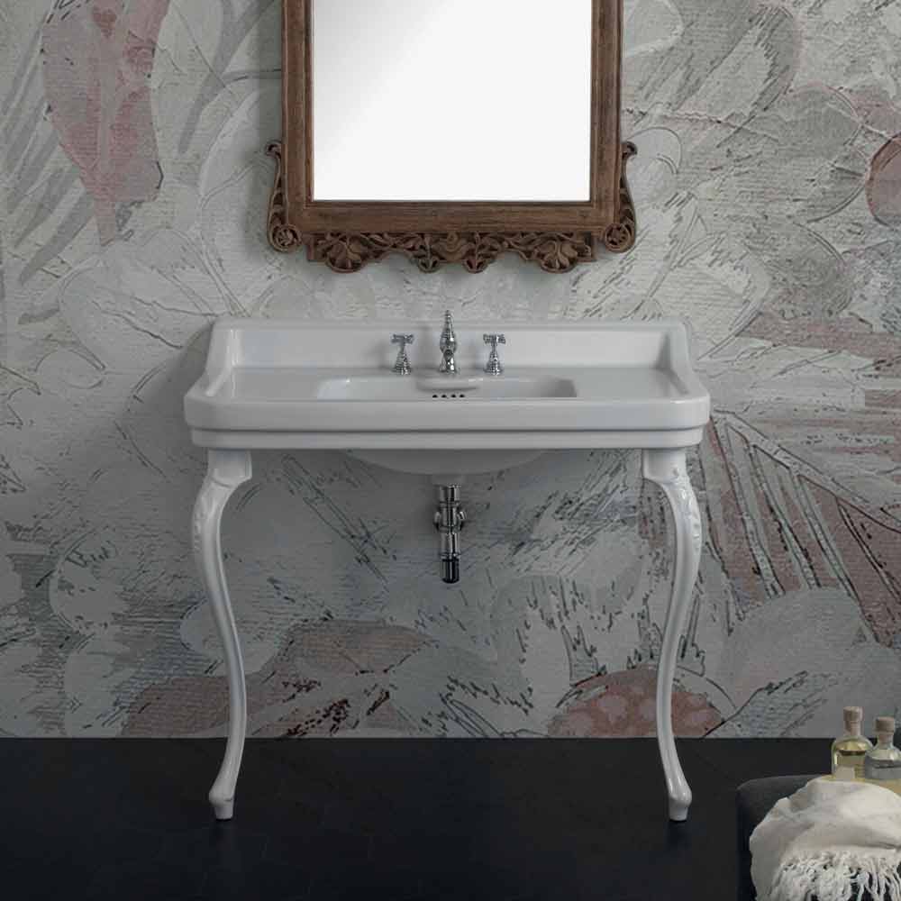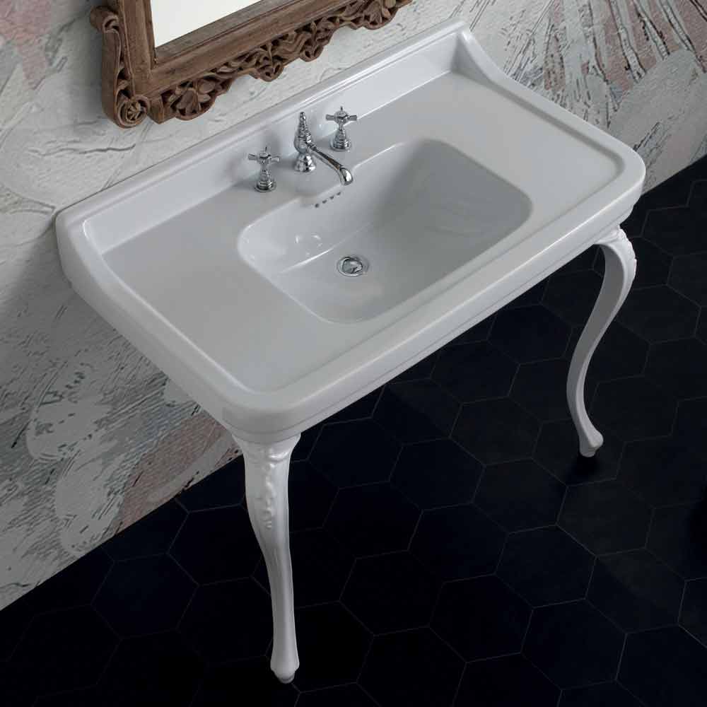 Lavabo consola de diseño clásico en cerámica fabricado en Italia, Swami Consola de lavabo sobre encimera con lavabo simple fabricado íntegramente en cerámica blanca. Gracias a su espléndido diseño clásico y su funcionalidad aportará belleza y practicidad a tu baño.