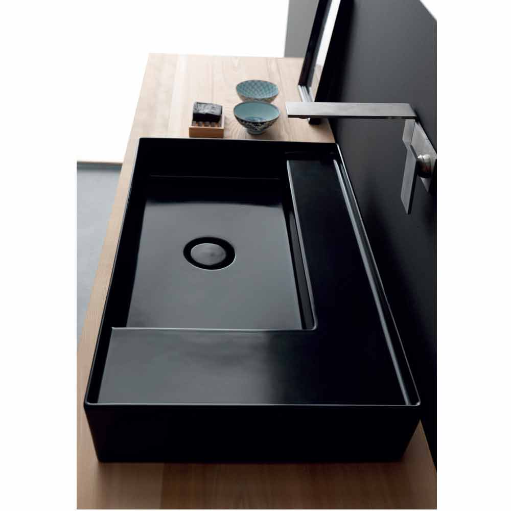 Lavabo sobre encimera moderno en cerámica negra hecho en Italia Lavabo de cerámica negra mate de estilo moderno, disponible sin orificio para grifería.