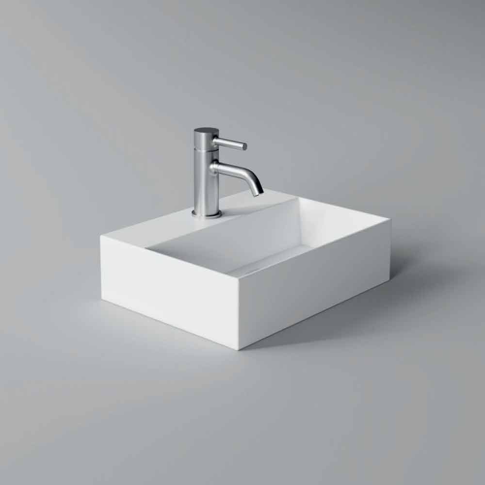 Lavabo de diseño moderno en cerámica blanca o de color, para instalación sobre encimera o suspendida. Actuar.