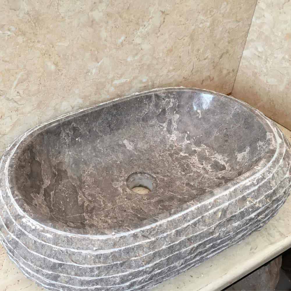 Lavabo de baño de piedra gris Ivy, pieza única de diseño