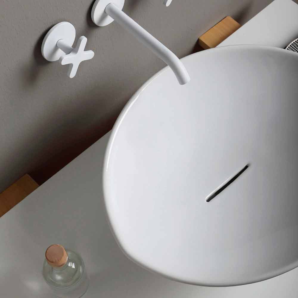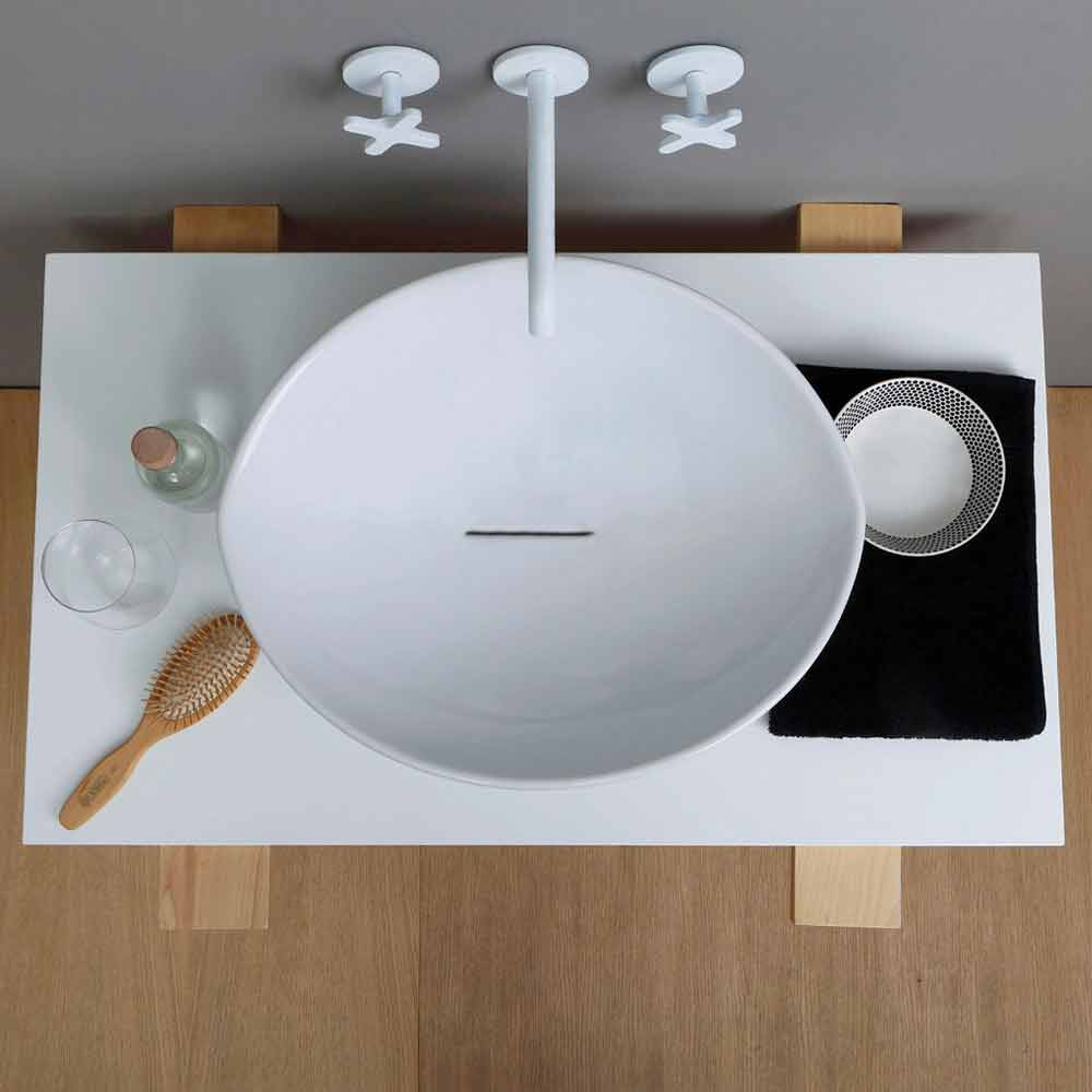 Lavabo sobre encimera de diseño de moda en cerámica made Italy Animals Lavabo o "lavabo" de forma irregular, que recuerda a una sección de almendra, dotado de un desagüe continuo. Este lavabo se puede personalizar eligiendo entre diferentes acabados y decoraciones: para solicitar información y / o un presupuesto personalizado, escriba a clienti@viadurini.it.