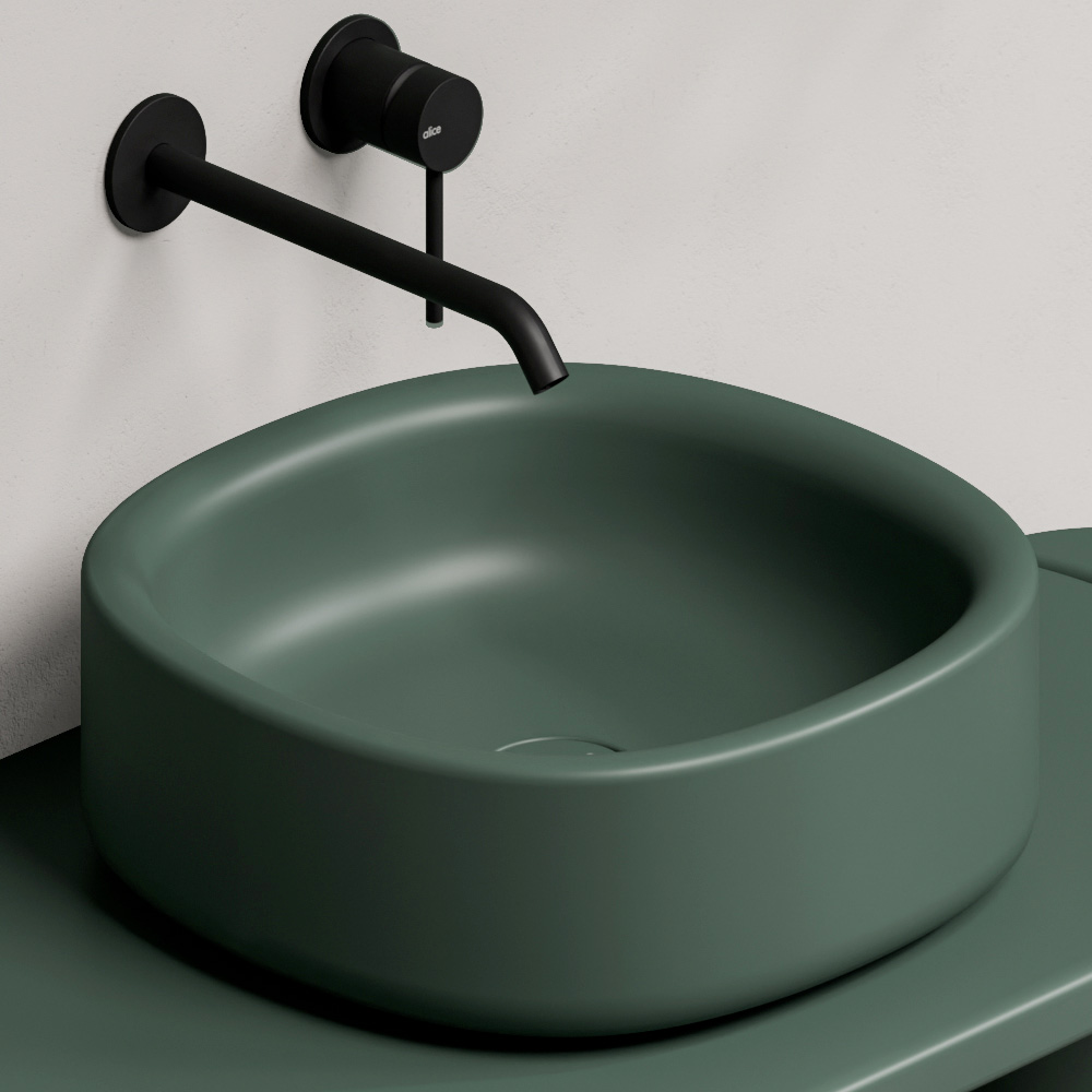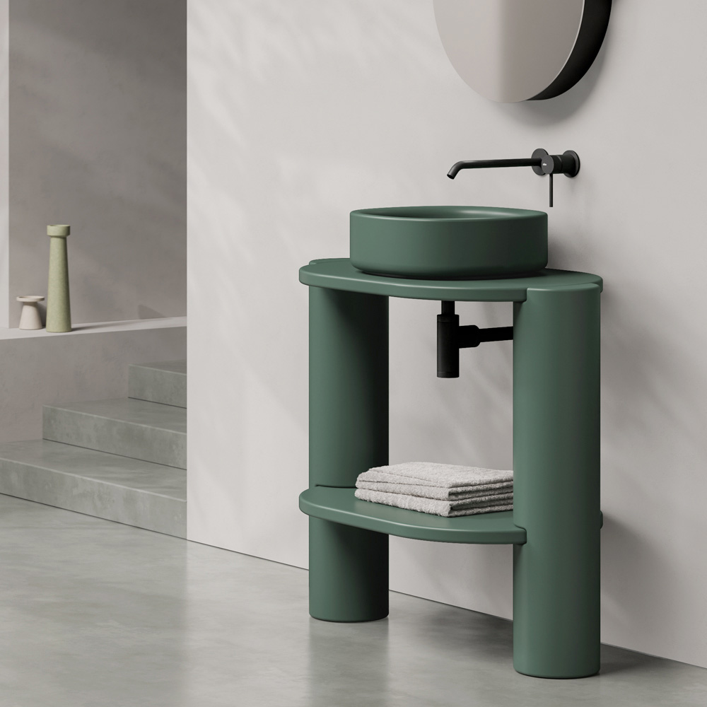 Su borde ligeramente grueso le otorga solidez y presencia, mientras que la superficie lisa realza su brillo, convirtiéndolo en un auténtico punto focal de la decoración del baño.