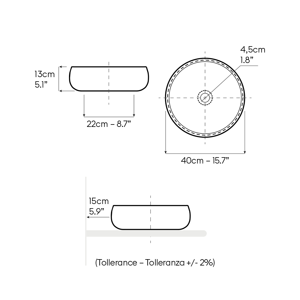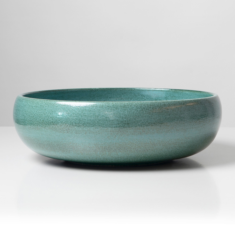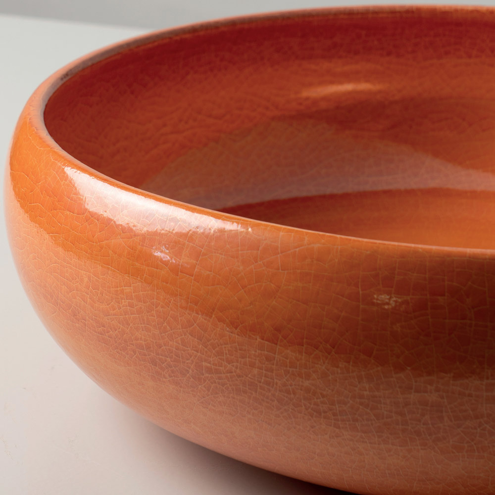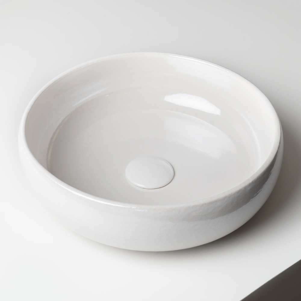 La forma esencial y primordial se equilibra con proporciones armoniosas, mientras que la superficie esmaltada crea reflejos vibrantes e irregulares que hacen que cada lavabo sea único. El característico craquelado Raku realza el aspecto texturizado y artesanal del producto, transformándolo en un auténtico elemento decorativo.
