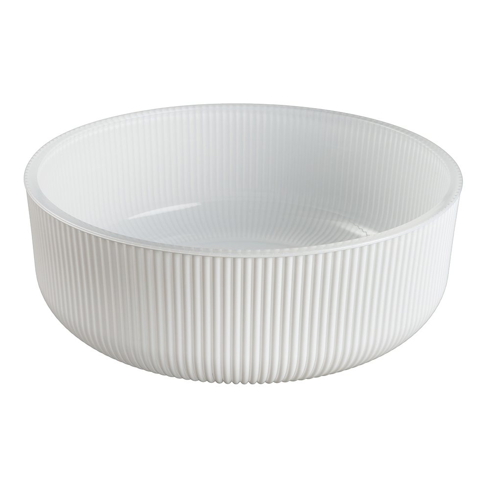 Un elemento de decoración que se convierte en el protagonista del baño, este lavabo de cristal veneciano combina la maestría artesanal con el refinamiento estético típico del Made in Italy . Fabricado en cristal resinado y pintado con finos acabados, destaca por su superficie exterior con un elegante patrón de rayas que crea singulares juegos de luz y reflejos.