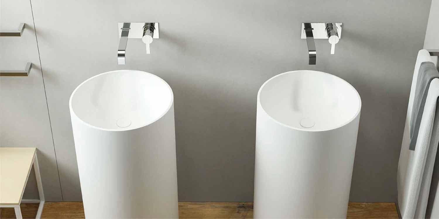 Solid Surface-Luxolid® es un compuesto sintético a base de resinas poliacrílicas altamente seleccionadas y cargas minerales (trihidrato de aluminio), fabricadas en molde a través de un proceso polimérico. El resultado es un material con una estructura uniforme, de un nivel de calidad superior en comparación con los productos producidos por la losa: desde la superficie en su interior, el Luxolid® no muestra diferencias de color ni de compacidad. Los productos de Luxolid® se fabrican en Italia: desde la elección de la materia prima hasta la mezcla según fórmulas exclusivas, desde el estudio de los modelos hasta la realización en el molde para finalmente pasar al acabado hecho en gran parte a mano. Los productos que han sufrido daños, como rasguños profundos o astillado, pueden repararse y, además, para la limpieza, se recomienda secar siempre los productos para evitar que el agua estancada forme anillos de piedra caliza (que, sin embargo, no pueden atacar el producto). . La limpieza diaria se puede hacer con detergentes normales.