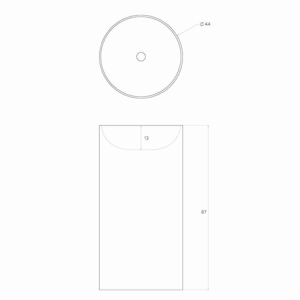 Lavabo de pie cilíndrico autoportante hecho en Italia, Rumo Rumo es un fregadero cilíndrico en Luxolid de diseño contemporáneo y moderno diseñado para una instalación independiente; Perfecto para realzar tu baño.