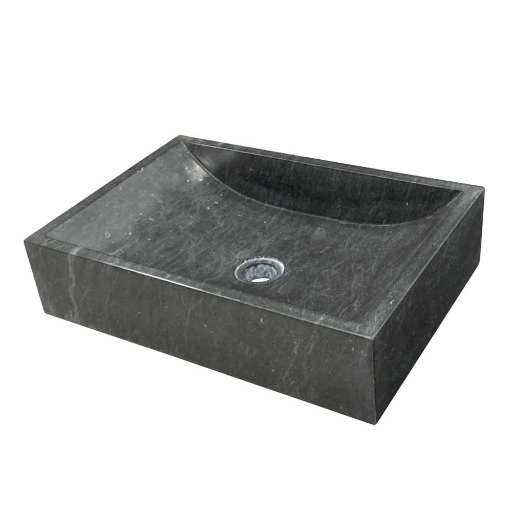 Lavabo rectangular sobre encimera realizado en piedra natural color negro modelo Giacarta.