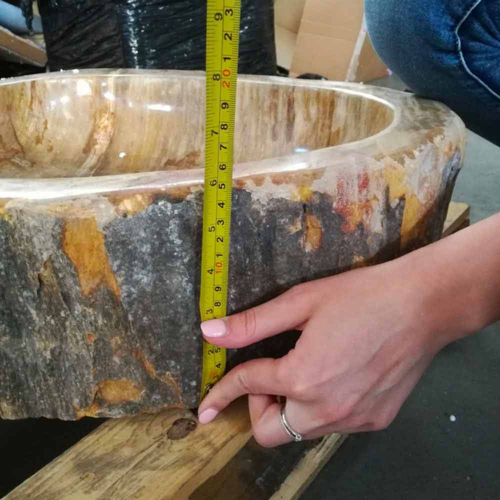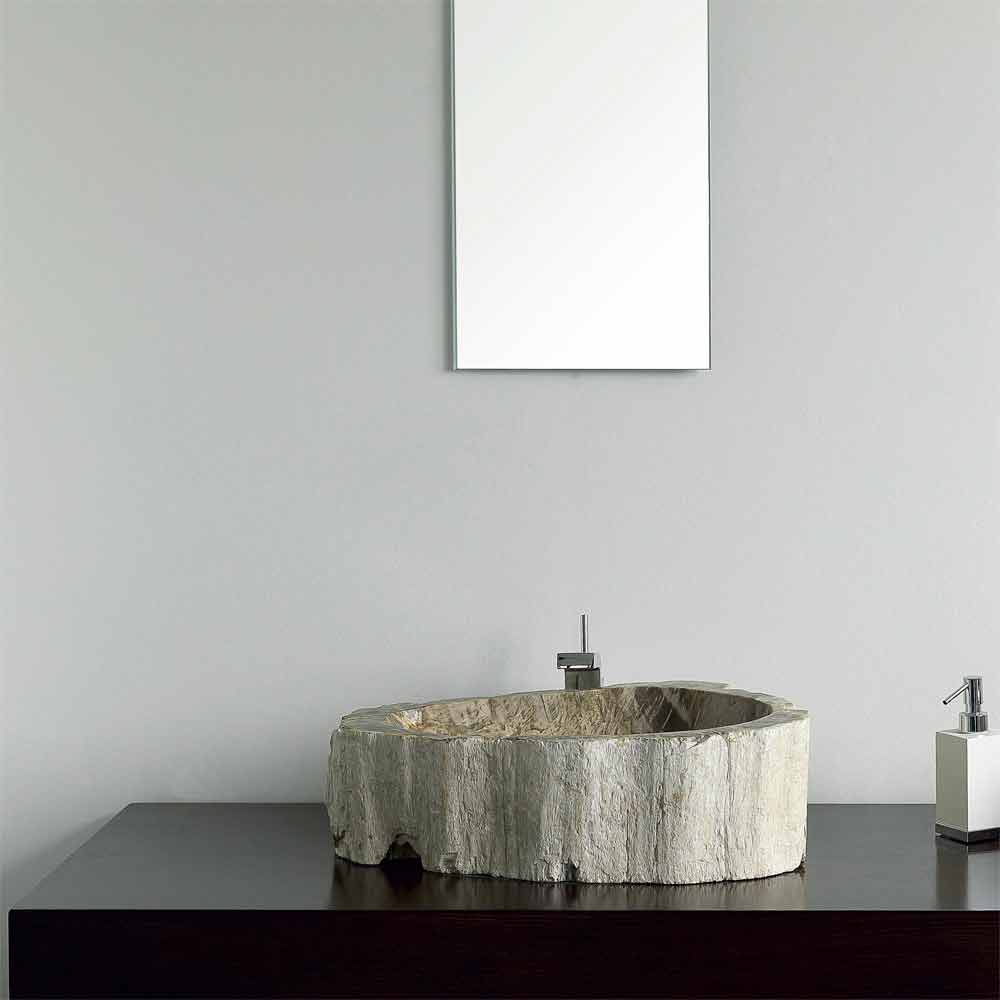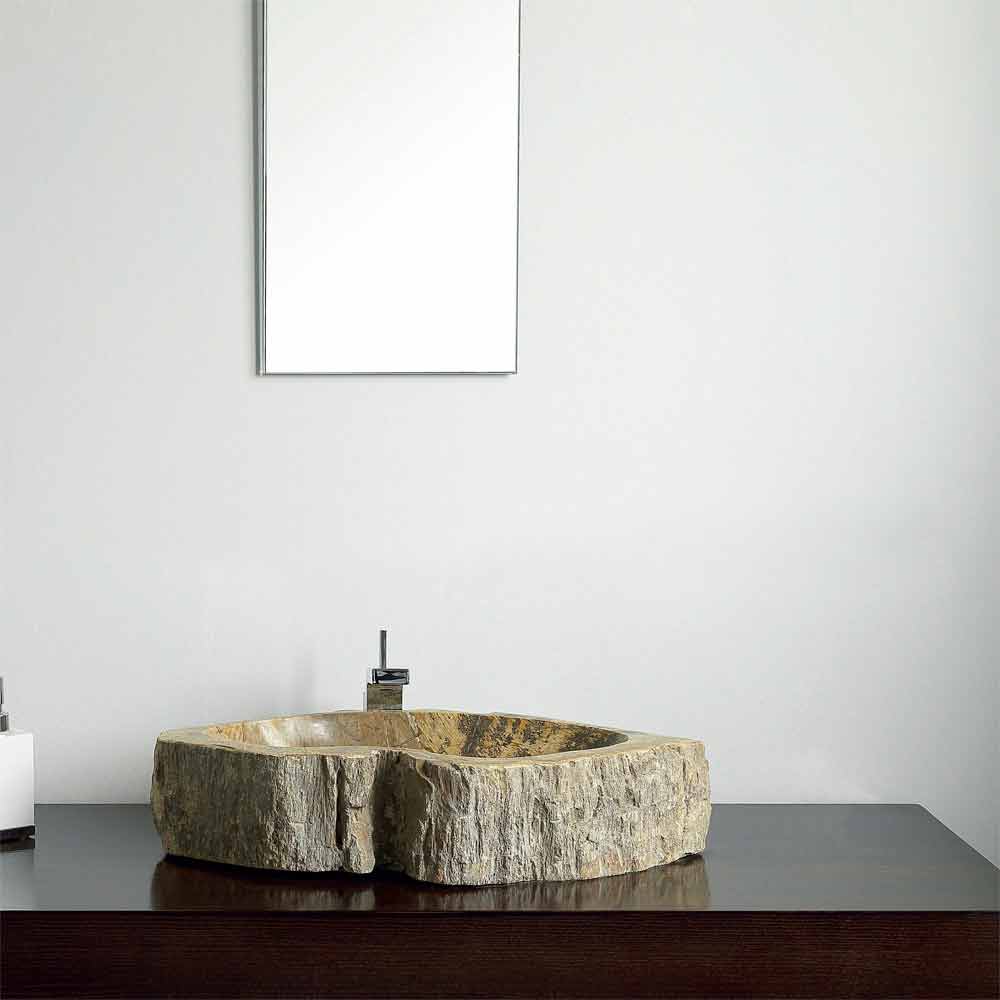 Lavabo sobre encimera de madera petrificada pieza única modelo Goa