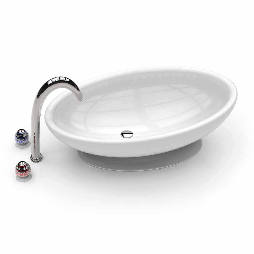 La forma de este lavabo para el baño recuerda a la mitad de un huevo, del que toma su nombre.
