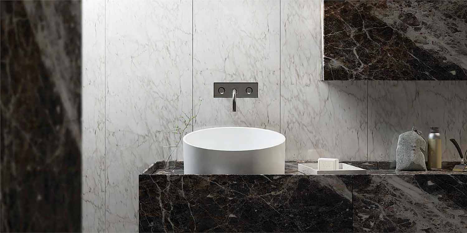 Solid Surface-Luxolid® es un compuesto sintético a base de resinas poliacrílicas y cargas minerales altamente seleccionadas (trihidrato de aluminio), fabricadas en molde a través de un proceso polimérico. El resultado es un material con una estructura uniforme, de un nivel de calidad superior en comparación con los productos producidos por la losa: desde la superficie en su interior, el Luxolid® no muestra diferencias de color ni de compacidad. Los productos de Luxolid® se fabrican en Italia: desde la elección de la materia prima hasta la mezcla según fórmulas exclusivas, desde el estudio de los modelos hasta la realización en el molde para finalmente pasar al acabado hecho en gran parte a mano. Los productos que han sufrido daños, como rasguños profundos o astillado, pueden repararse y, además, para la limpieza, se recomienda secar siempre los productos para evitar que el agua estancada forme anillos de piedra caliza (que, sin embargo, no pueden atacar el producto). . La limpieza diaria se puede hacer con detergentes normales.