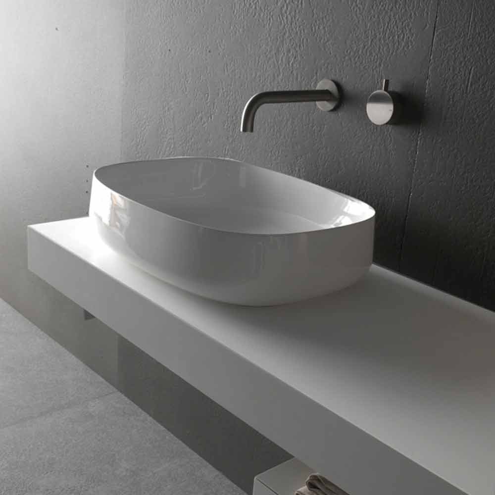 Lavabo sobre encimera moderno, diseño de cerámica blanca, made in Italy.