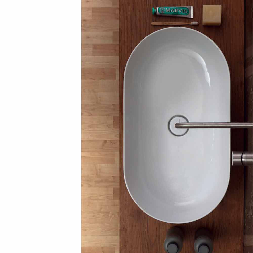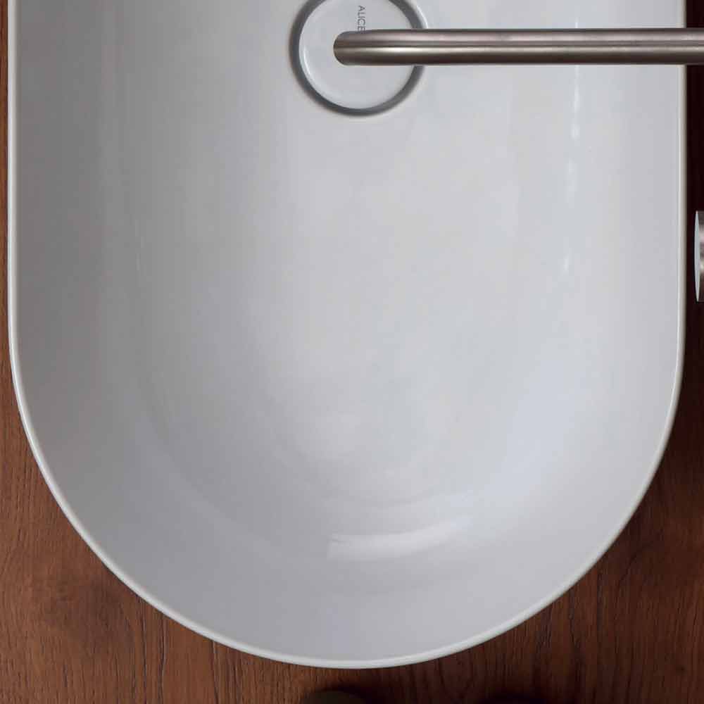 Lavabo sobre encimera de cerámica 70x35cm made in Italy Star, diseño moderno Máxima esencialidad. Star es una colección caracterizada por un diseño revolucionario que combina proporciones perfectas y formas puras. Una colección elegante de líneas minimalistas y diseño esencial. Los lavabos tienen espesores finos y se pueden instalar encima. NÓTESE BIEN:Desagüe de cerámica de descarga libre incluido, grifo excluido. Como opción es posible disponer del sifón redondo de latón con acabado cromado.