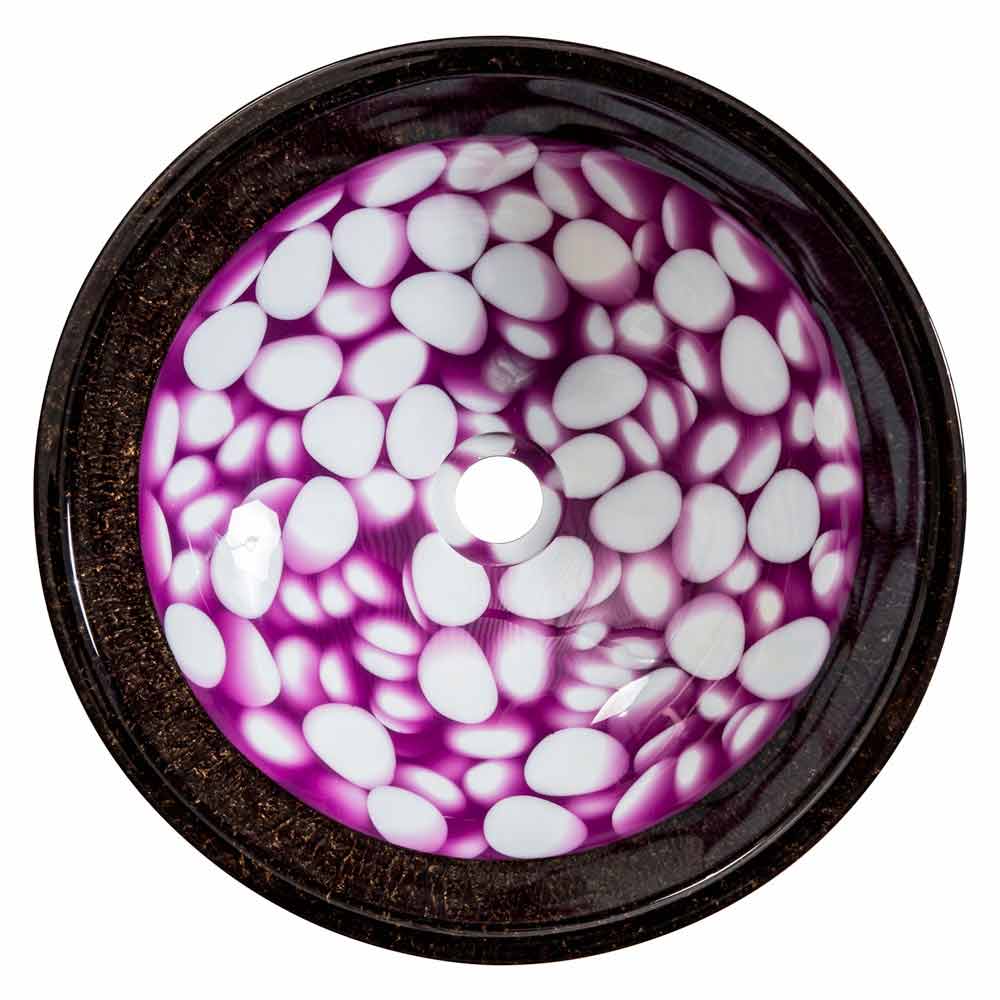 Buggiano es un fantástico lavabo de encimera redondo fabricado a mano con una resina artificial de alta calidad, en cuyo interior se montan piedras.