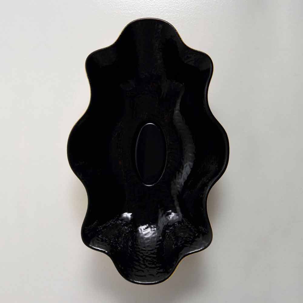 Lavabo sobre encimera de cerámica negro y dorado hecho en Italia Cubo El mar y las formas que produce están presentes en el justo equilibrio estético. El gesto orgánico está presente en el perímetro, que recuerda a una estrella de mar. Este lavabo se puede personalizar eligiendo entre diferentes acabados y decoraciones: para solicitar información y / o un presupuesto personalizado, escriba a clienti@viadurini.it.