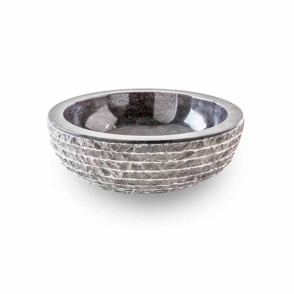 Fregadero hecho a mano en mármol de las canteras al sur del monte Merapi. Pulido interiormente y en el borde superior, está crudo y trabajado con cúter y cincel por fuera. ¡La materia se muestra y se deja tocar por cómo es y cómo puede llegar a ser!