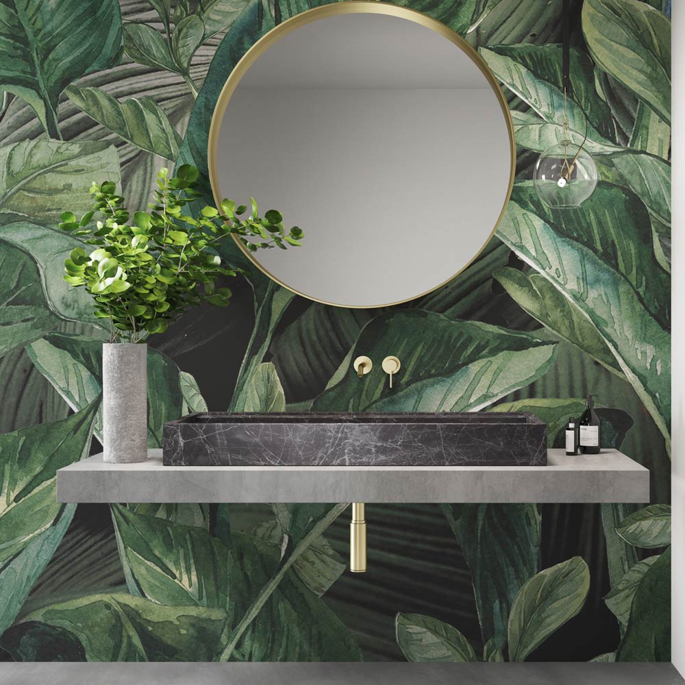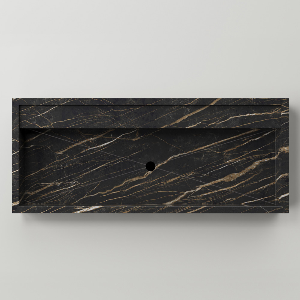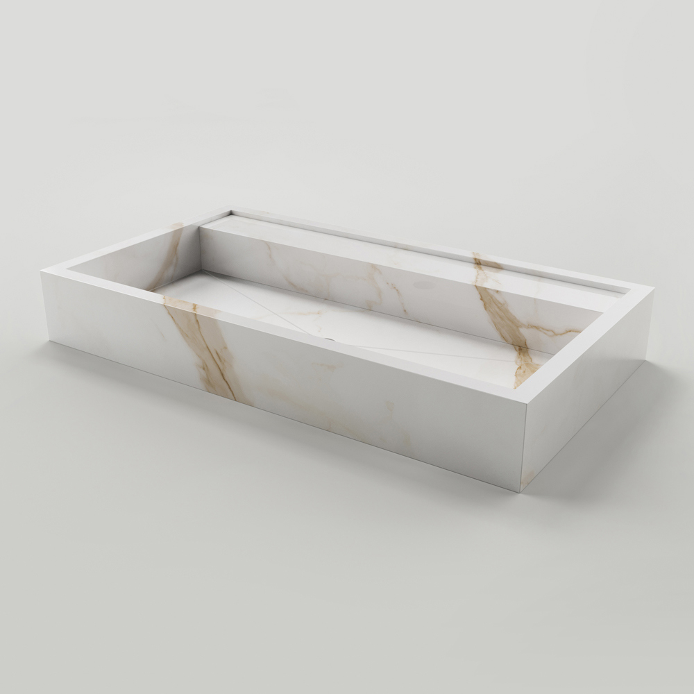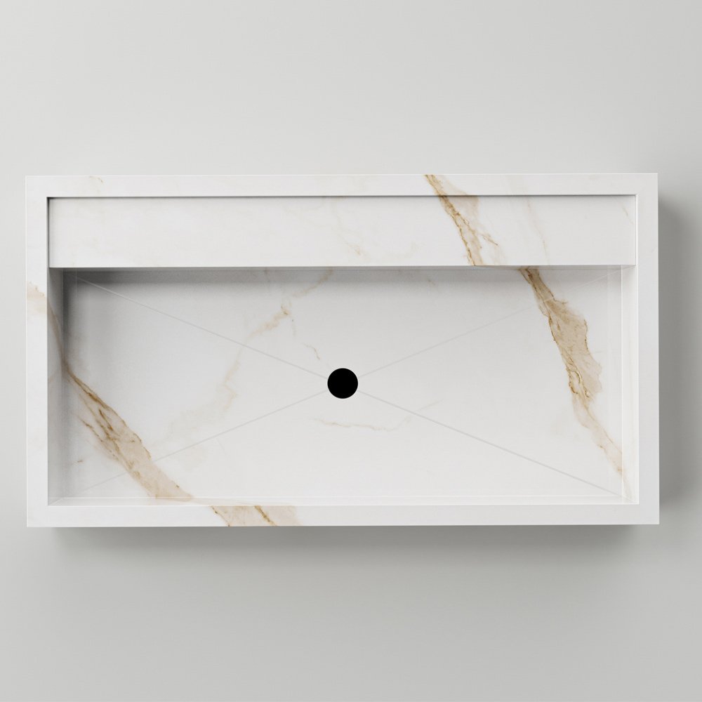 Lavabo sobre encimera de gres porcelánico efecto mármol Made in Italy.