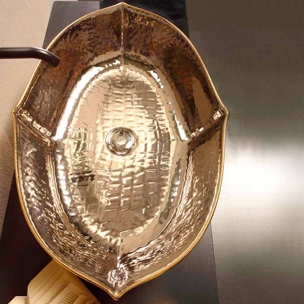 Lavabo sobre encimera de cerámica en platino y oro de diseño Oscar made Italy