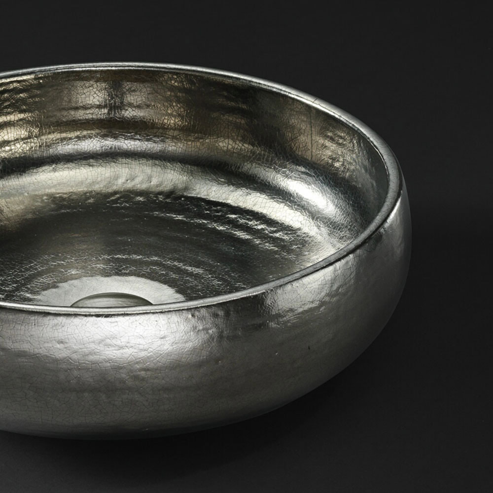 Lavabo de baño independiente fabricado en arcilla raku con acabado platino , íntegramente Made in Italy. La elegancia de este producto está contenida en su sencillez de líneas y acabados . No es excesivo, no invade los espacios pero le da ese toque particular al ambiente del baño . Es un elemento que se adapta para completar el mobiliario de cualquier baño, respondiendo a diferentes necesidades de estilo y diseño. Su punto fuerte es la calidad del Made in Italy , garantizada por los materiales y procesos de producción todos made in Italy.