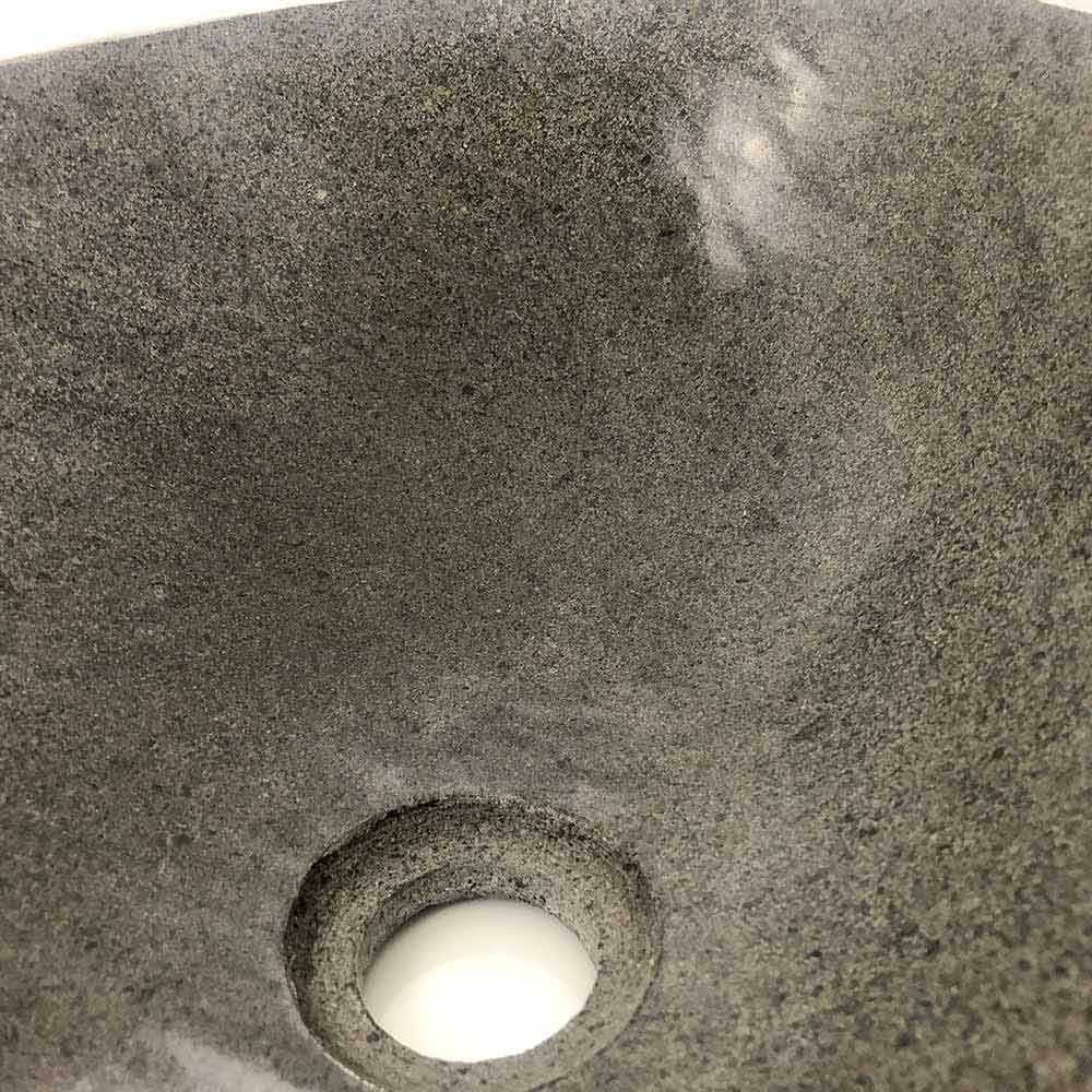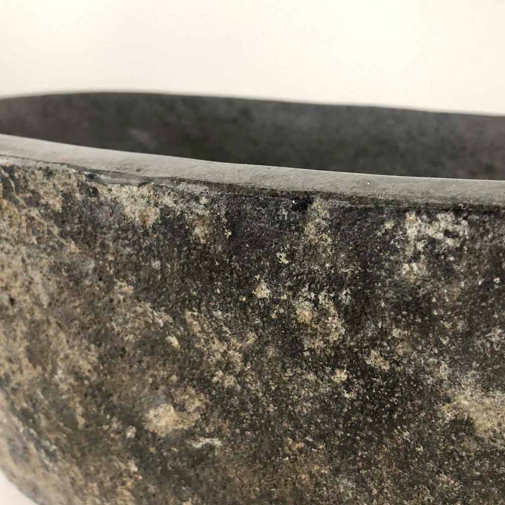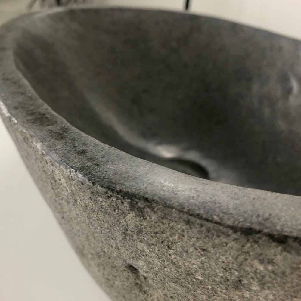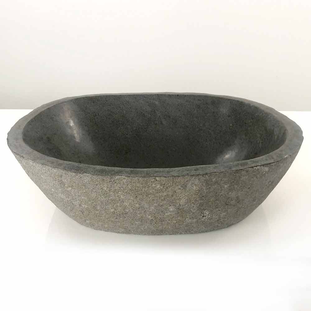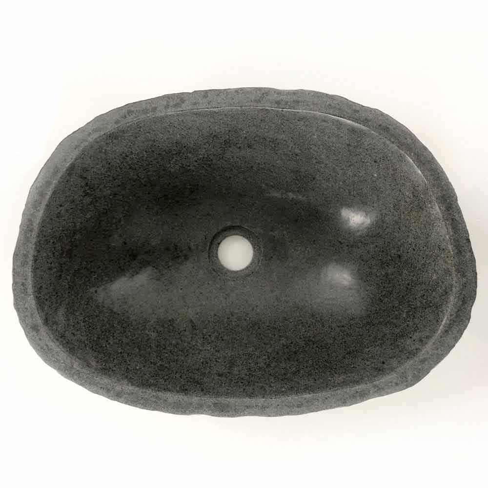 Lavabo de encimera modelo Akta en piedra de río natural, de forma ovalada.