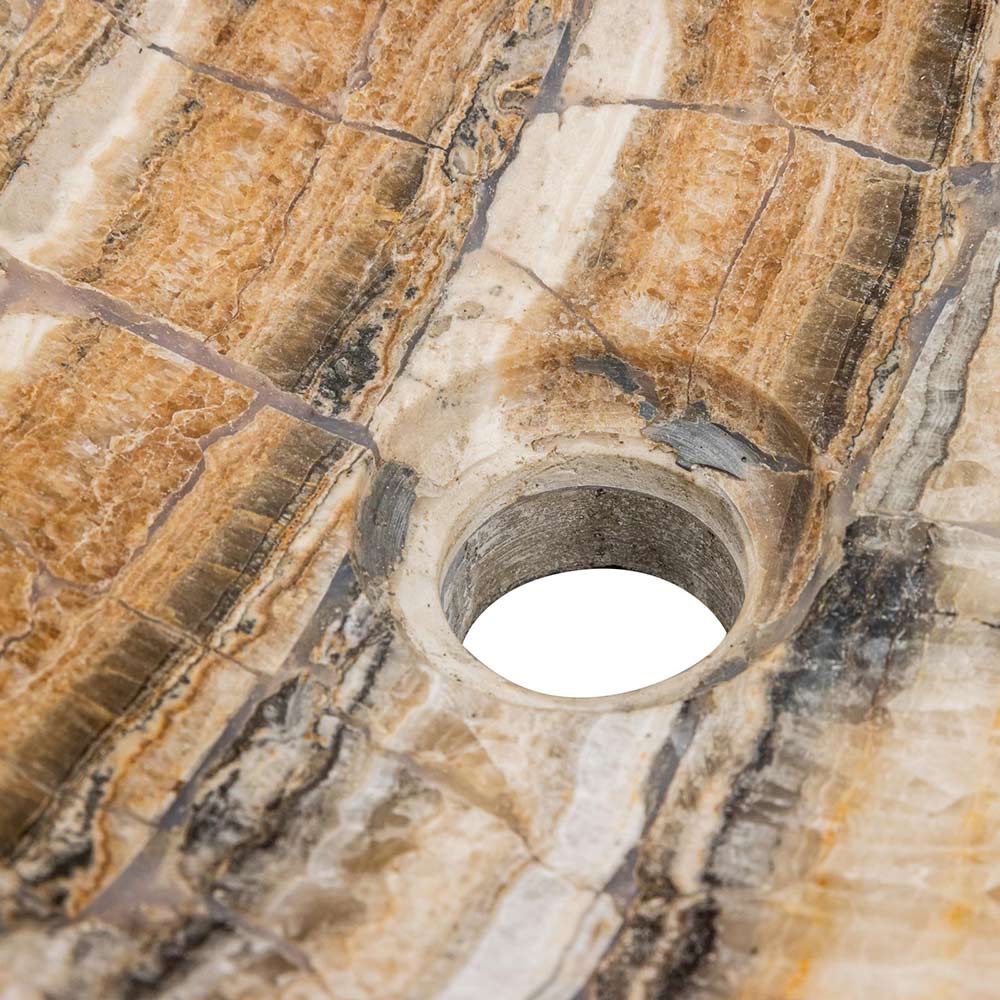 Palata es un lavabo sobre encimera realizado a mano en piedra de río con un mosaico de piedra de ónix en su interior.