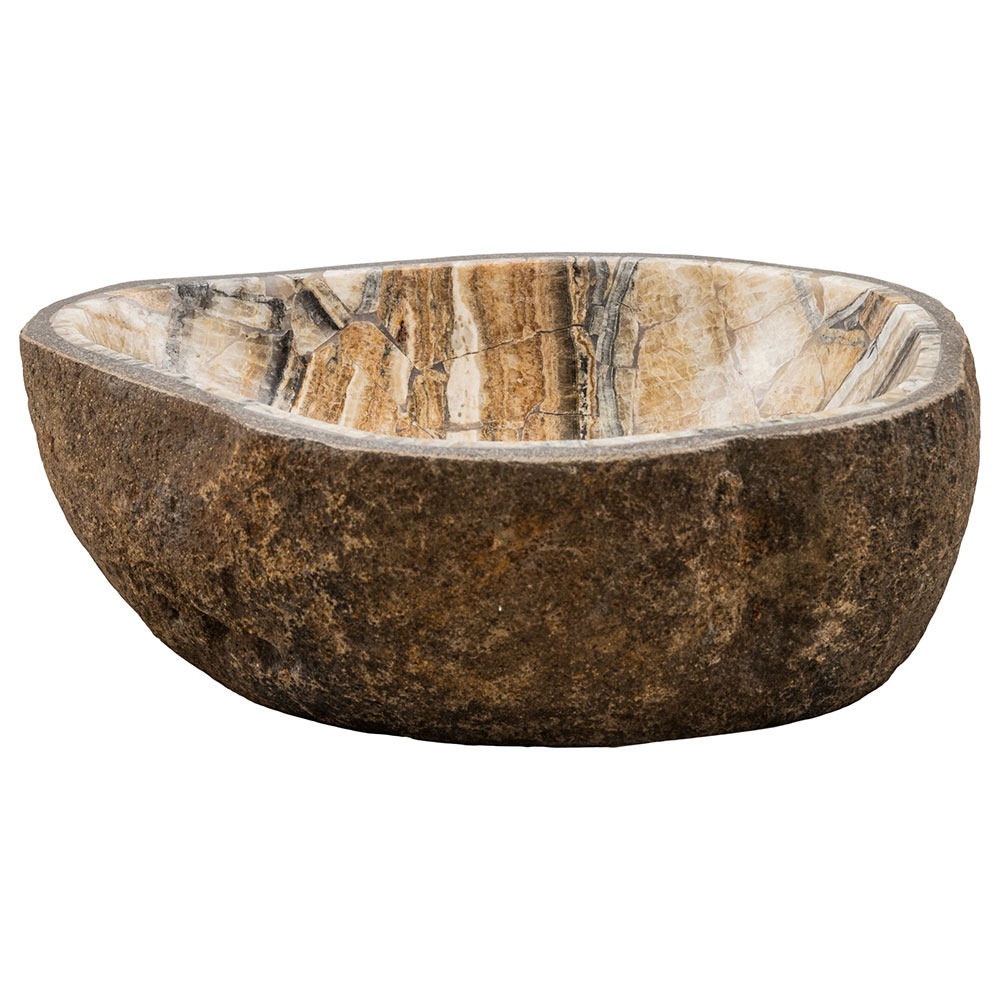 Lavabo sobre encimera de diseño realizado a mano en piedra de río, Palata