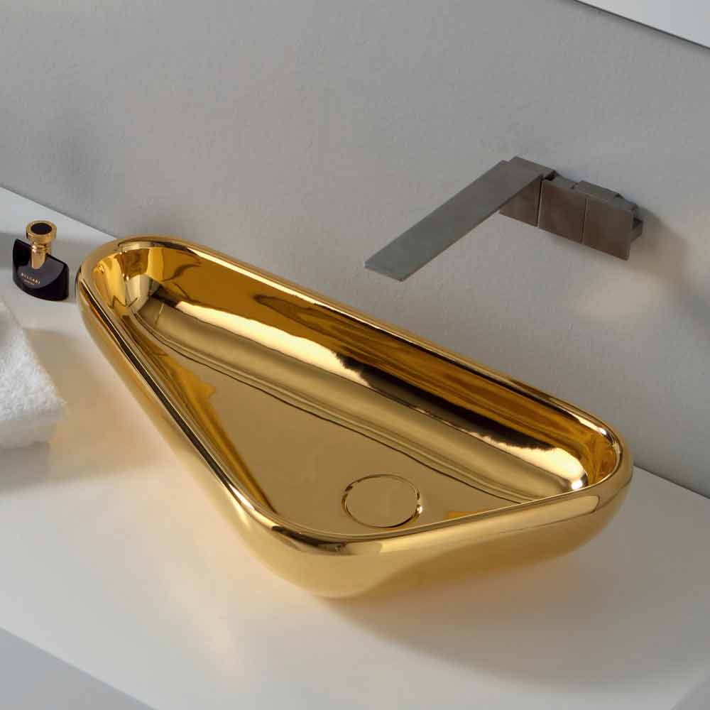 Lavabo sobre encimera de cerámica dorado moderno Sofia hecho en Italia