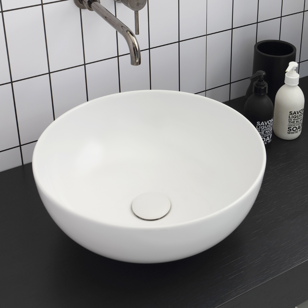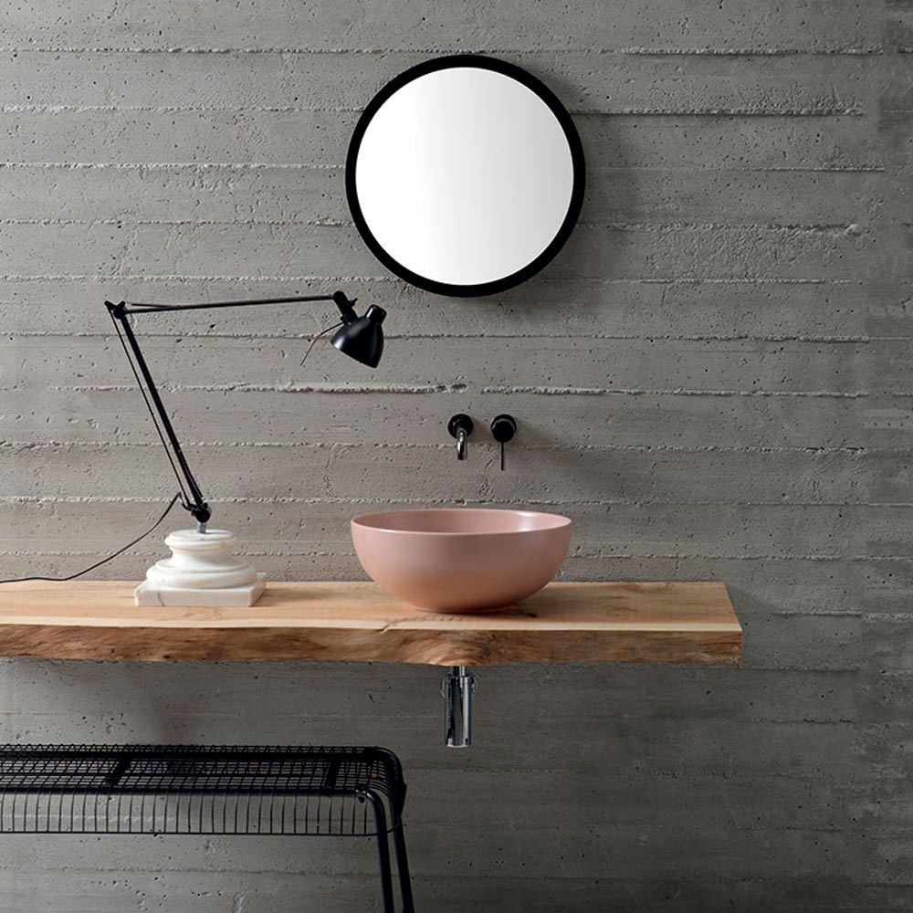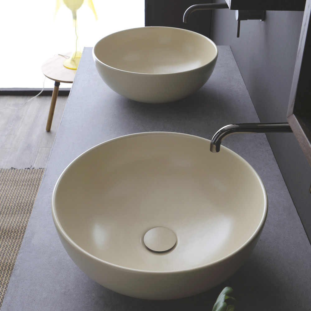 Lavabo sobre encimera redondo fabricado en cerámica coloreada con acabado mate mediante un proceso artesanal 100% Made in Italy . Sencillez y versatilidad se unen para dar vida a este maravilloso mueble de estilo minimalista y refinado diseñado para completar cualquier zona de baño moderno, aportando un toque de personalidad y elegancia .