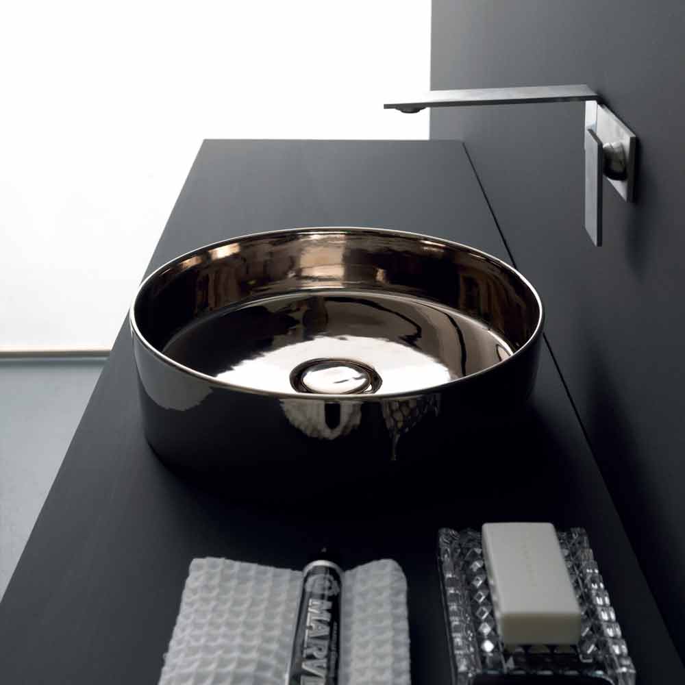 Lavabo redondo sobre encimera de cerámica coloreada hecho en Italia