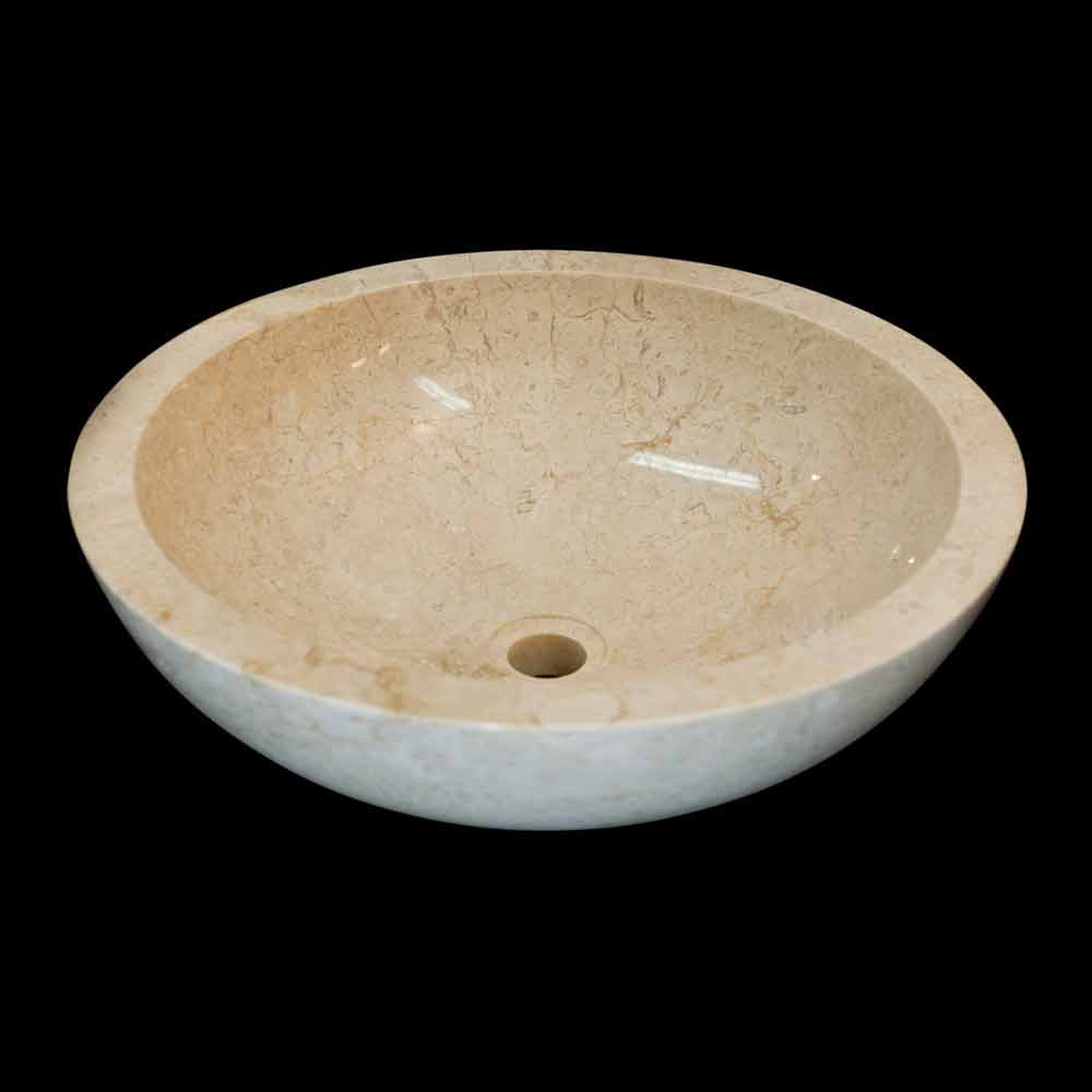 Lavabo sobre encimera redondo de piedra natural blanca modelo Job.