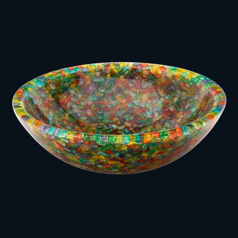 Lavabo translúcido fabricado en resina artificial de alta calidad con inserciones de piedra de cuarzo semiprecioso. La artesanía y el procesamiento no industrial hacen de este lavabo de diseño una verdadera pieza única , no reproducible en serie. Por este motivo, puede haber diferencias de color y forma en comparación con la foto del producto. Antes de realizar su pedido, puede solicitar una foto del artículo realmente disponible en stock: escriba a clienti@viadurini.it .