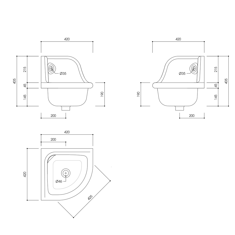 Lavabo de esquina suspendido en cerámica blanca y coloreada de 42 cm.