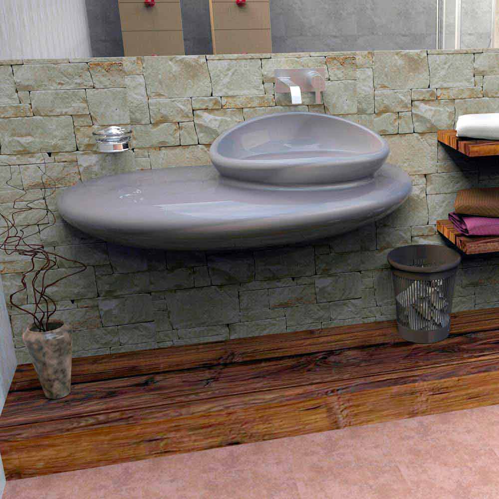 El acabado del material Solid Surface; hace aparecer el lavabo en la dulce forma de las piedras de río. Acabado lacado brillo.