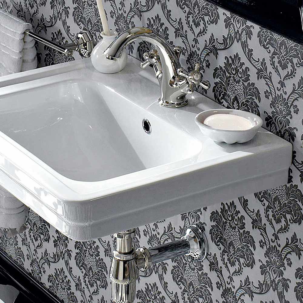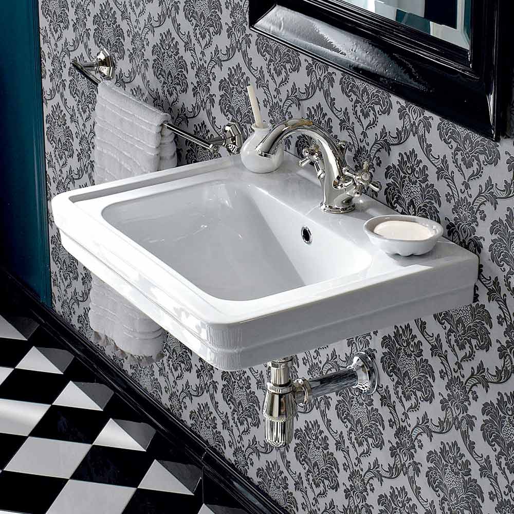 Lavabo suspendido de cerámica blanca de estilo clásico fabricado en Italia, Marwa.
