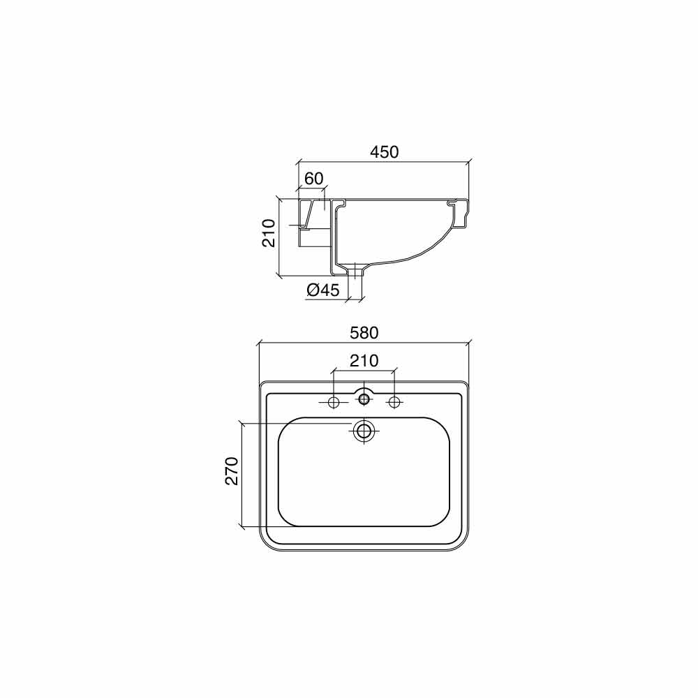 Marwa es un práctico fregadero suspendido, disponible con 1 o 3 orificios para grifería (a especificar al realizar el pedido), L 580 mm.