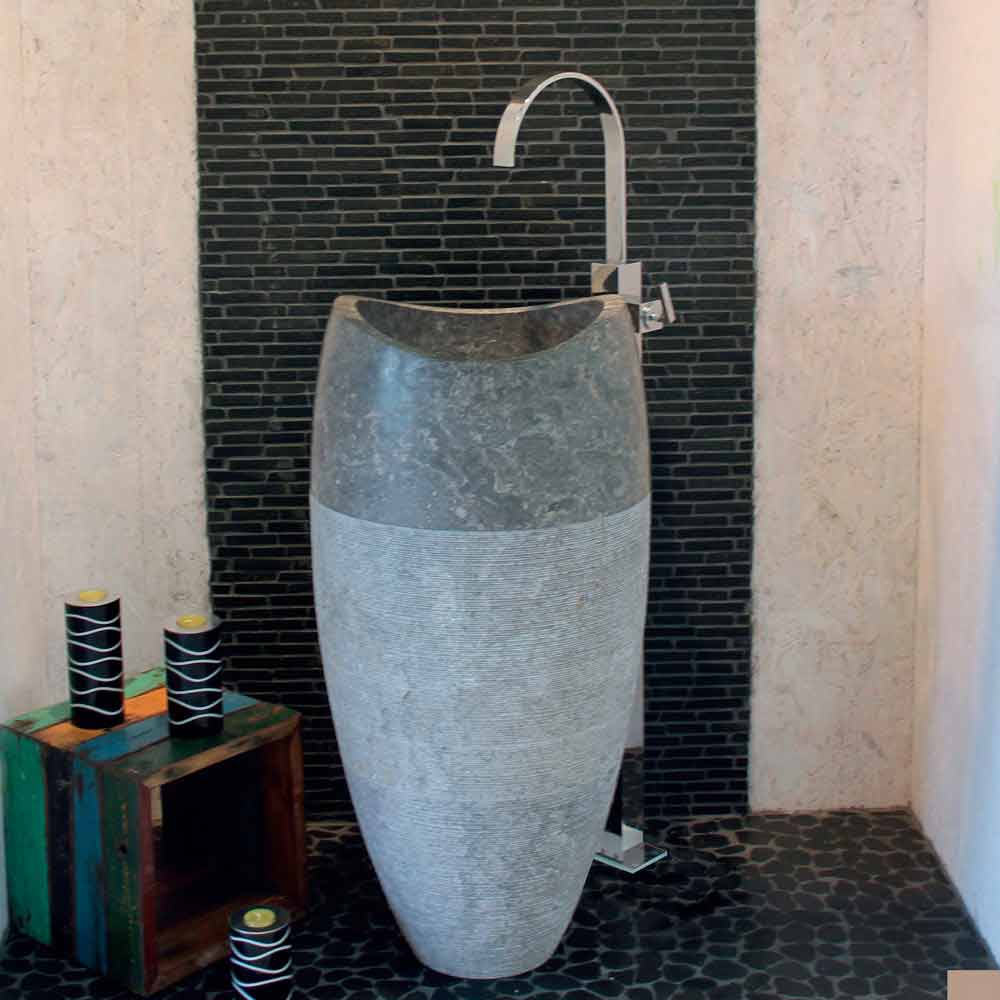 Lavabo esférico de columna de piedra natural ahumada modelo Gili