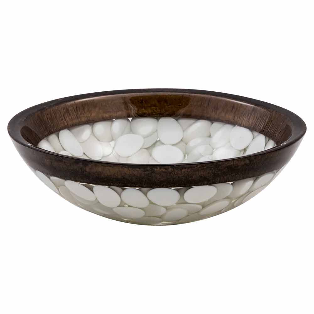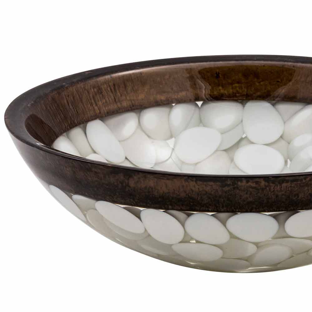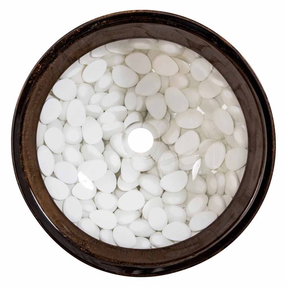 Buguggiate es un fabuloso lavabo de encimera redondo elaborado a mano con una resina artificial de alta calidad, en cuyo interior se montan piedras.