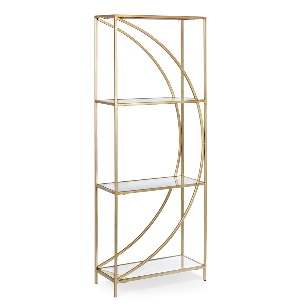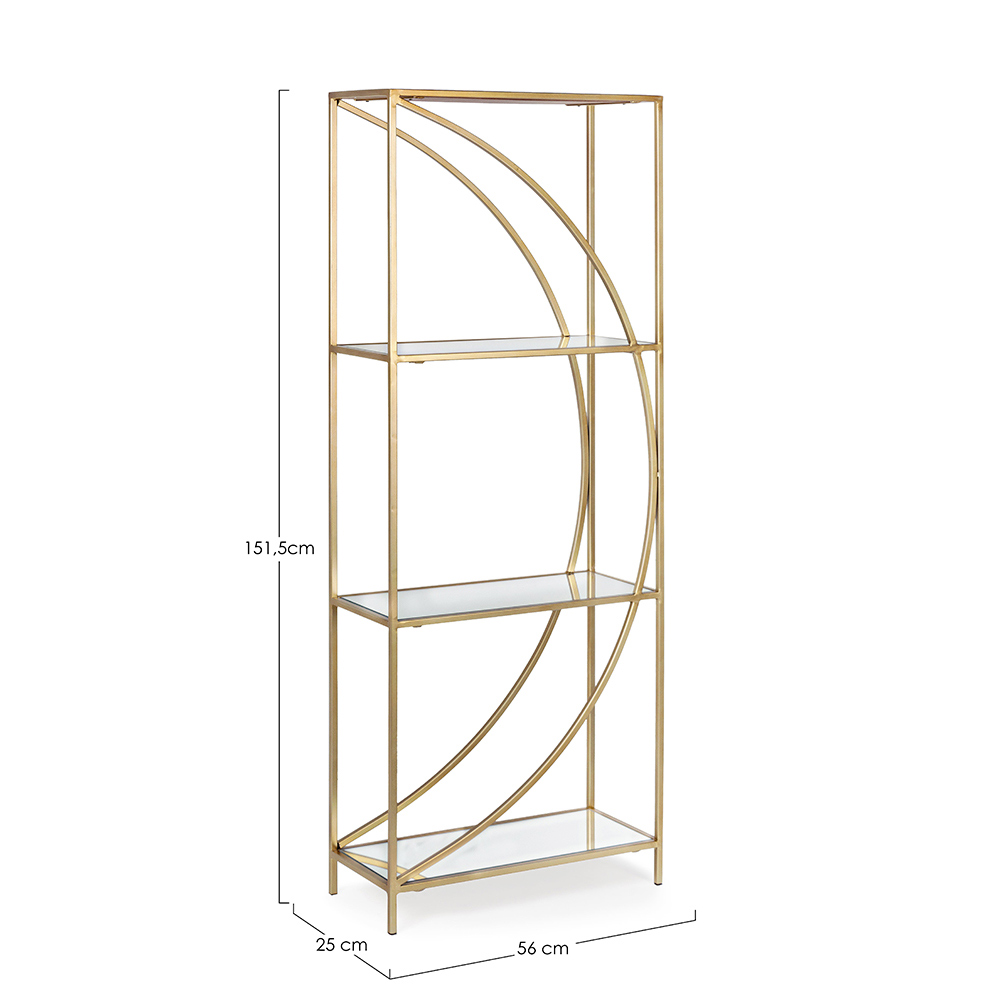 Librería alta autoportante de acero y 3 baldas de cristal de elegante diseño.