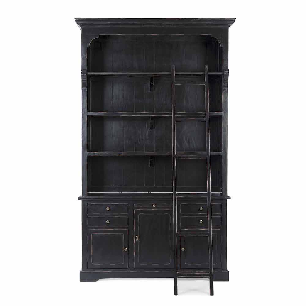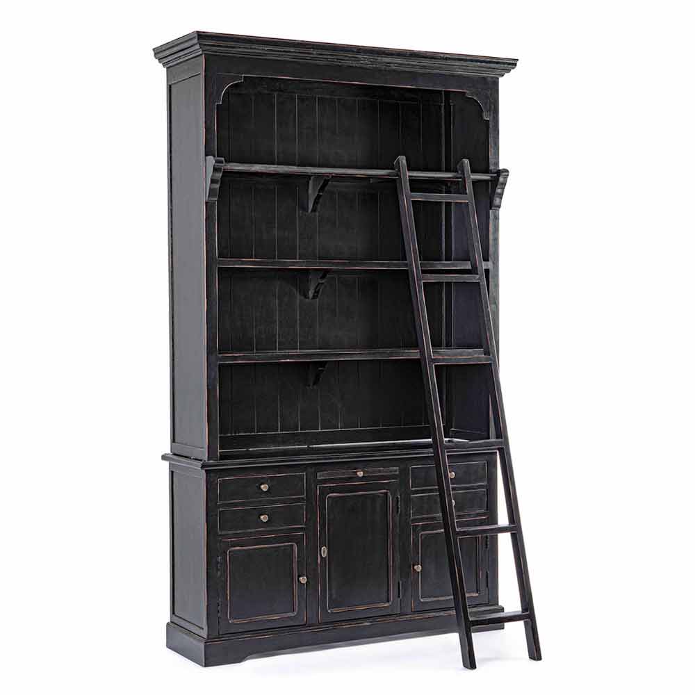 Librería de suelo de estilo clásico fabricada en madera de mango y MDF con tiradores de hierro fundido.