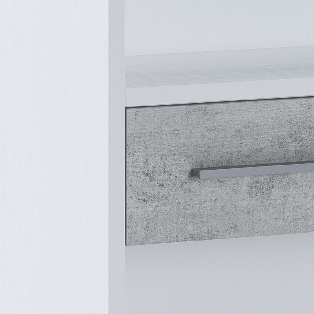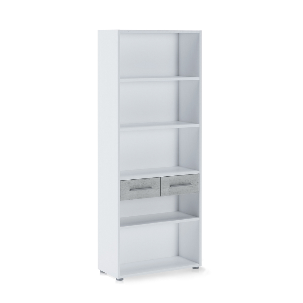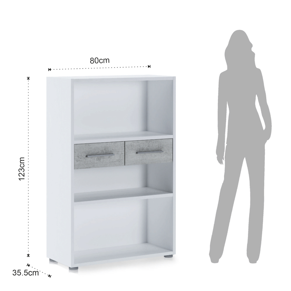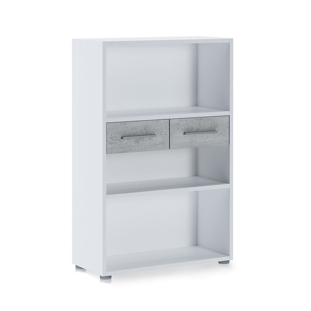 Librería realizada con paneles de partículas de madera ecológica revestida en melamina acabado Alerce a poro abierto y frentes de cajón en melamina acabado Cemento. Este mueble de acabados sencillos y lineales es perfecto para completar el mobiliario de cualquier ambiente cotidiano y contract. Es un artículo que te permite mantener ordenados tus libros y objetos y exponerlos para tenerlos siempre a mano pero en orden. Gracias a los materiales utilizados para la producción, se garantiza la máxima calidad y resistencia incluso en el tiempo.