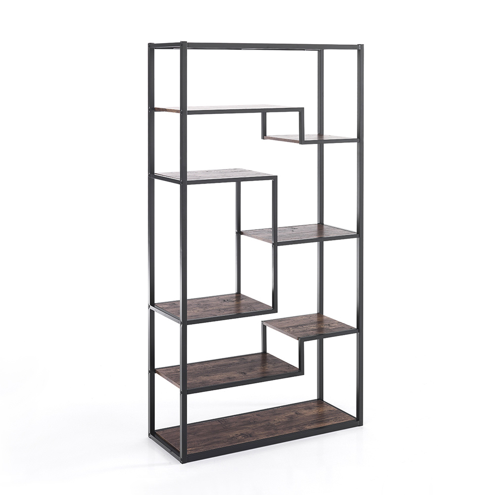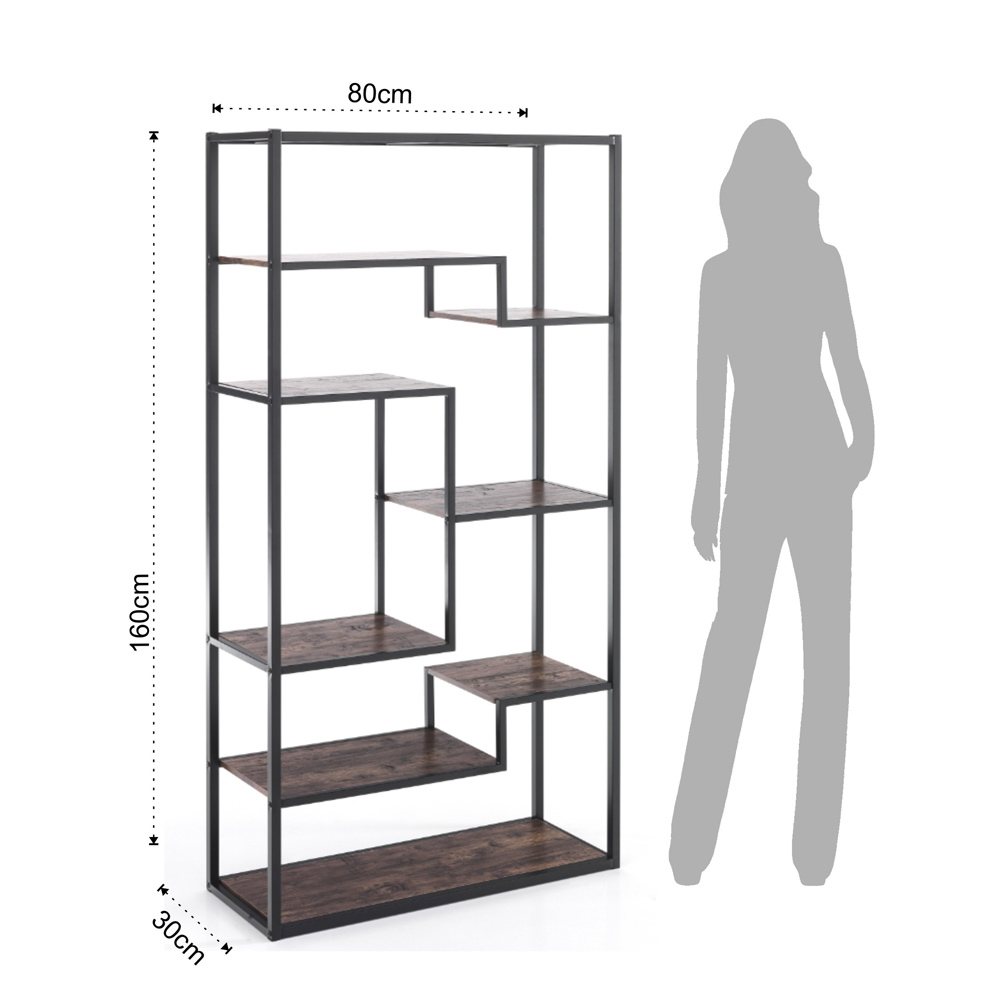 Librería realizada en metal pintado negro mate y estantes en partículas de madera revestidos en melamina con acabado madera envejecida , íntegramente . Este mueble de acabados sencillos y lineales es perfecto para completar el mobiliario de cualquier ambiente cotidiano y contract. Es un artículo que te permite mantener ordenados tus libros y objetos y exponerlos para tenerlos siempre a mano pero en orden. Gracias a los materiales utilizados para la producción, se garantiza la máxima calidad.