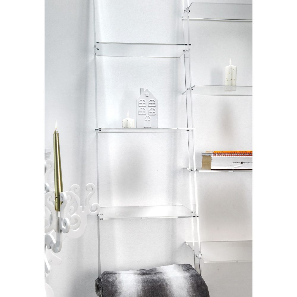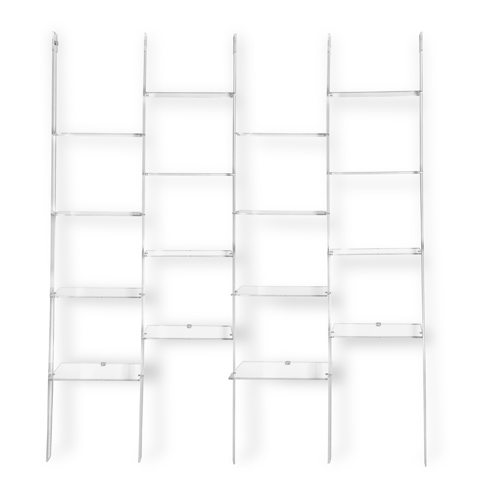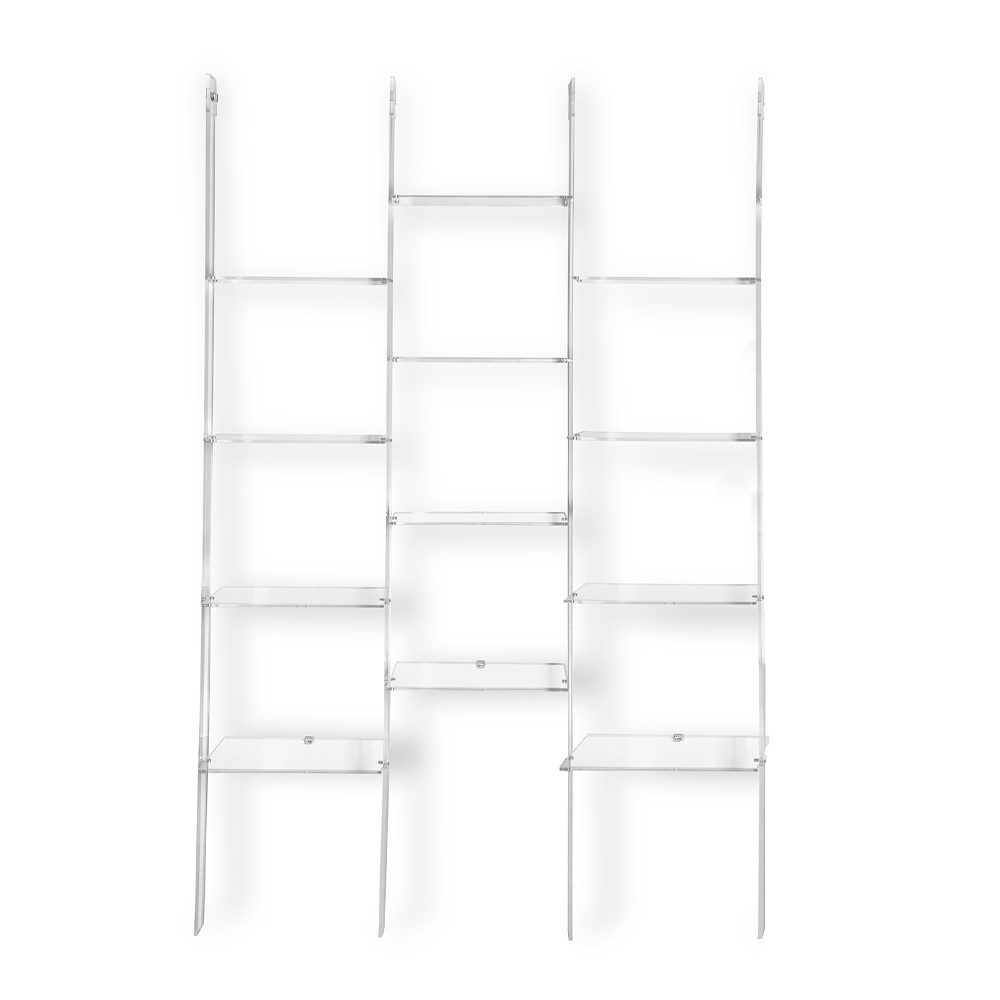 Librería de pared en forma de escalera de hasta 4 elementos en plexiglás transparente fabricada en Italia.