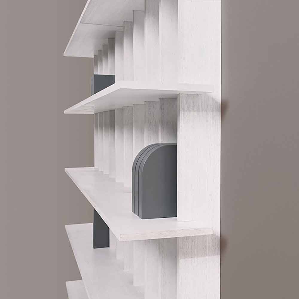 Librería de pared en fresno lacado a poro abierto con diseño shabby chic en diferentes colores, fabricada en Italia.