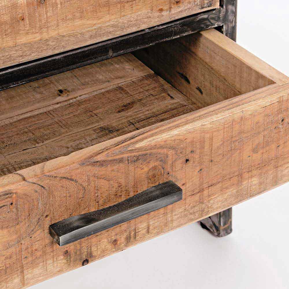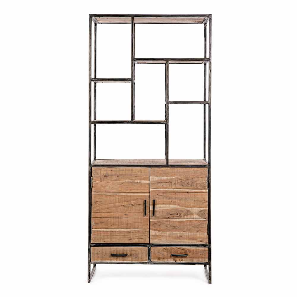 Librería de suelo de estilo industrial con estructura de acero pintado y madera.